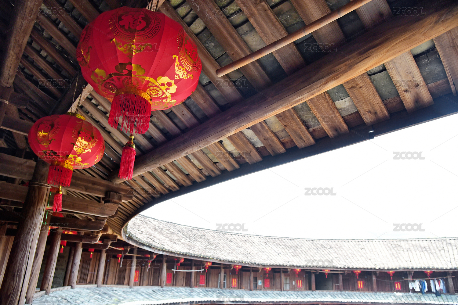 中國(guó)福建漳州南靖客家土樓懷遠(yuǎn)樓木制樓道
