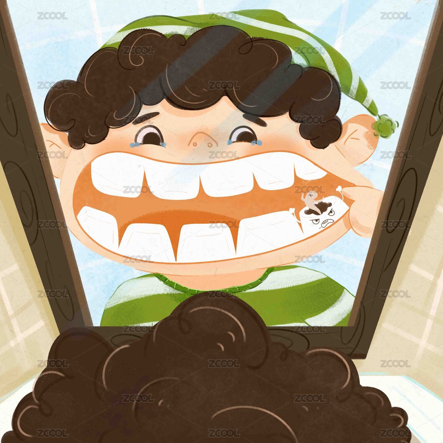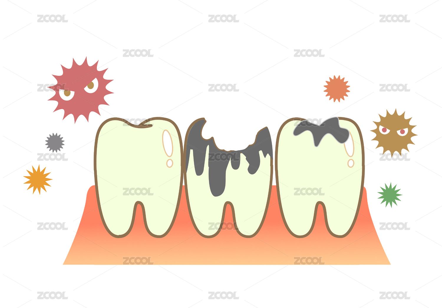 卡通牙齒蛀牙矢量插畫
