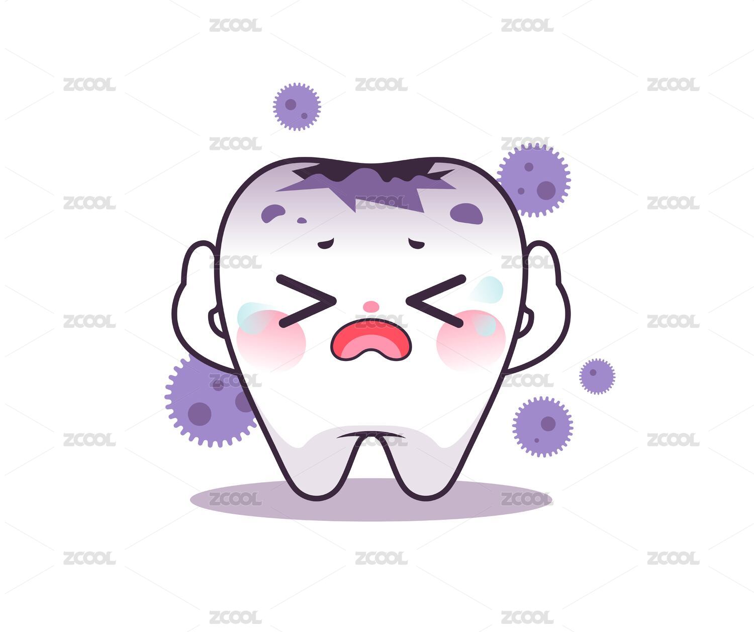 扁平風(fēng)格可愛的牙齒蛀牙生病了插畫元素