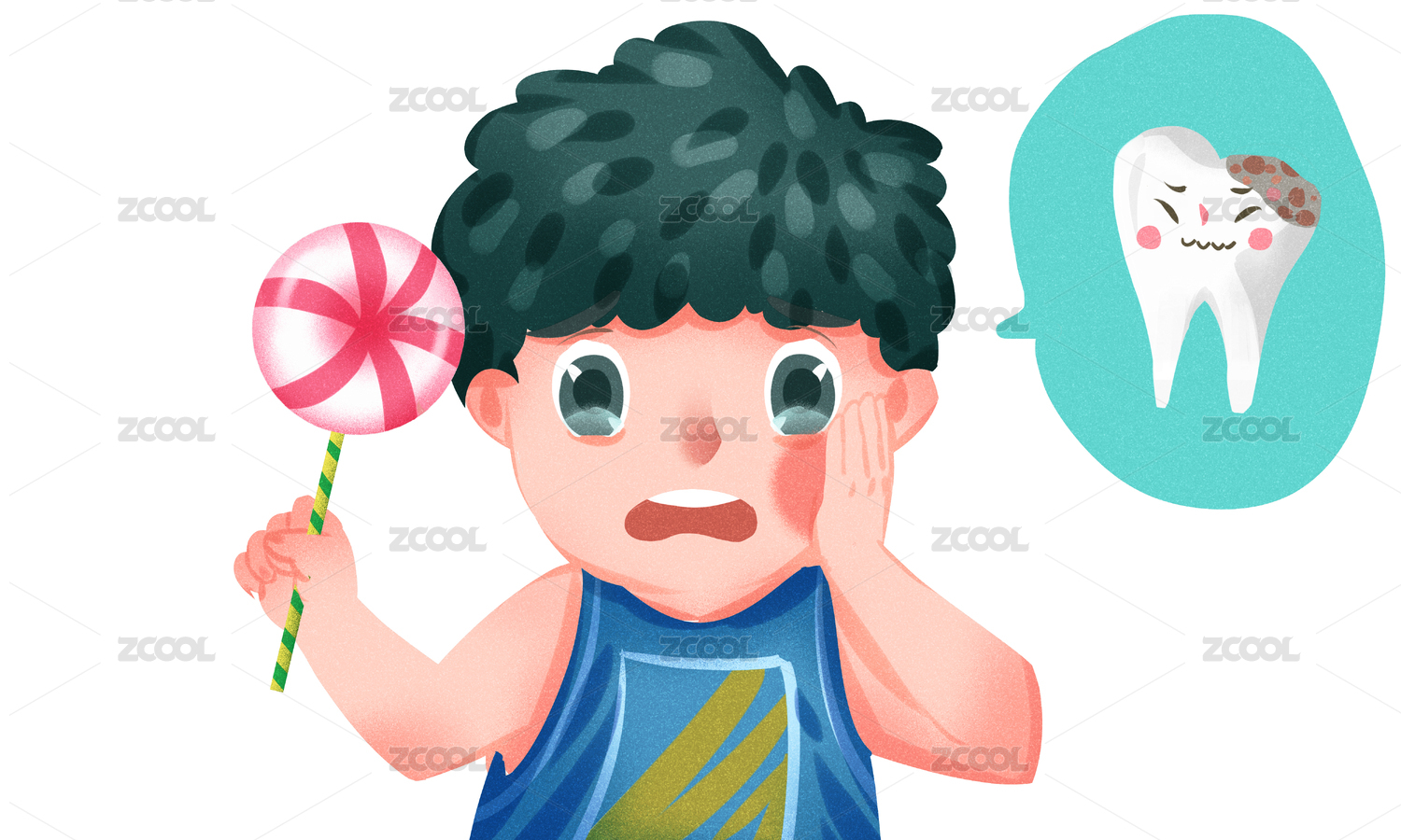 可愛的男孩吃棒棒糖蛀牙 國際愛牙日插畫人物元素