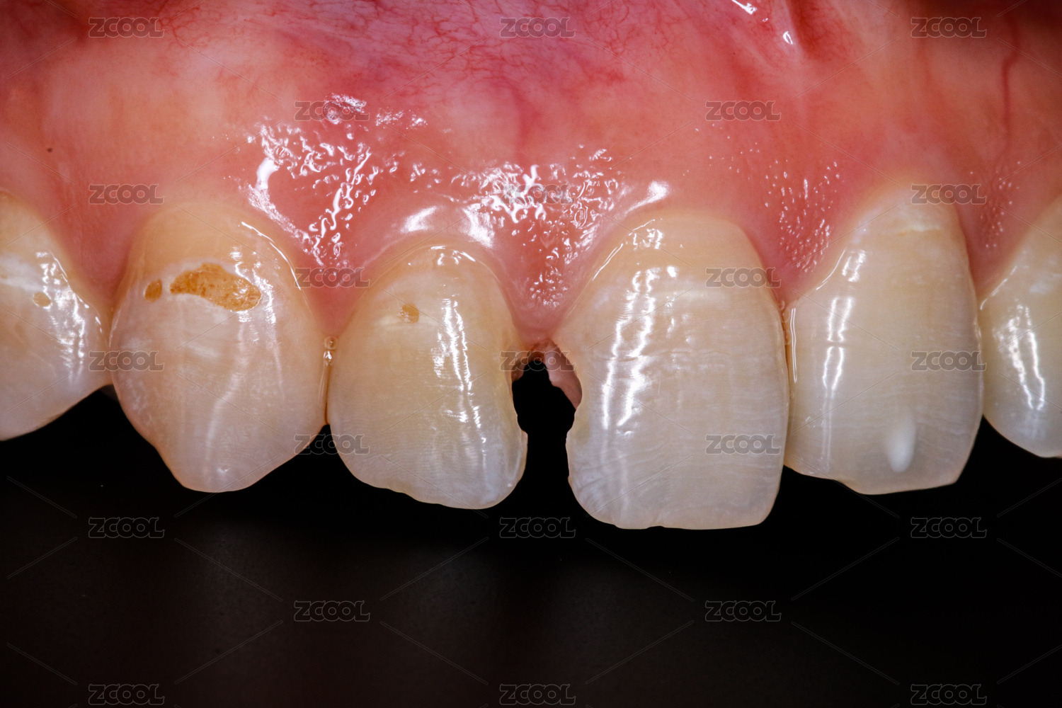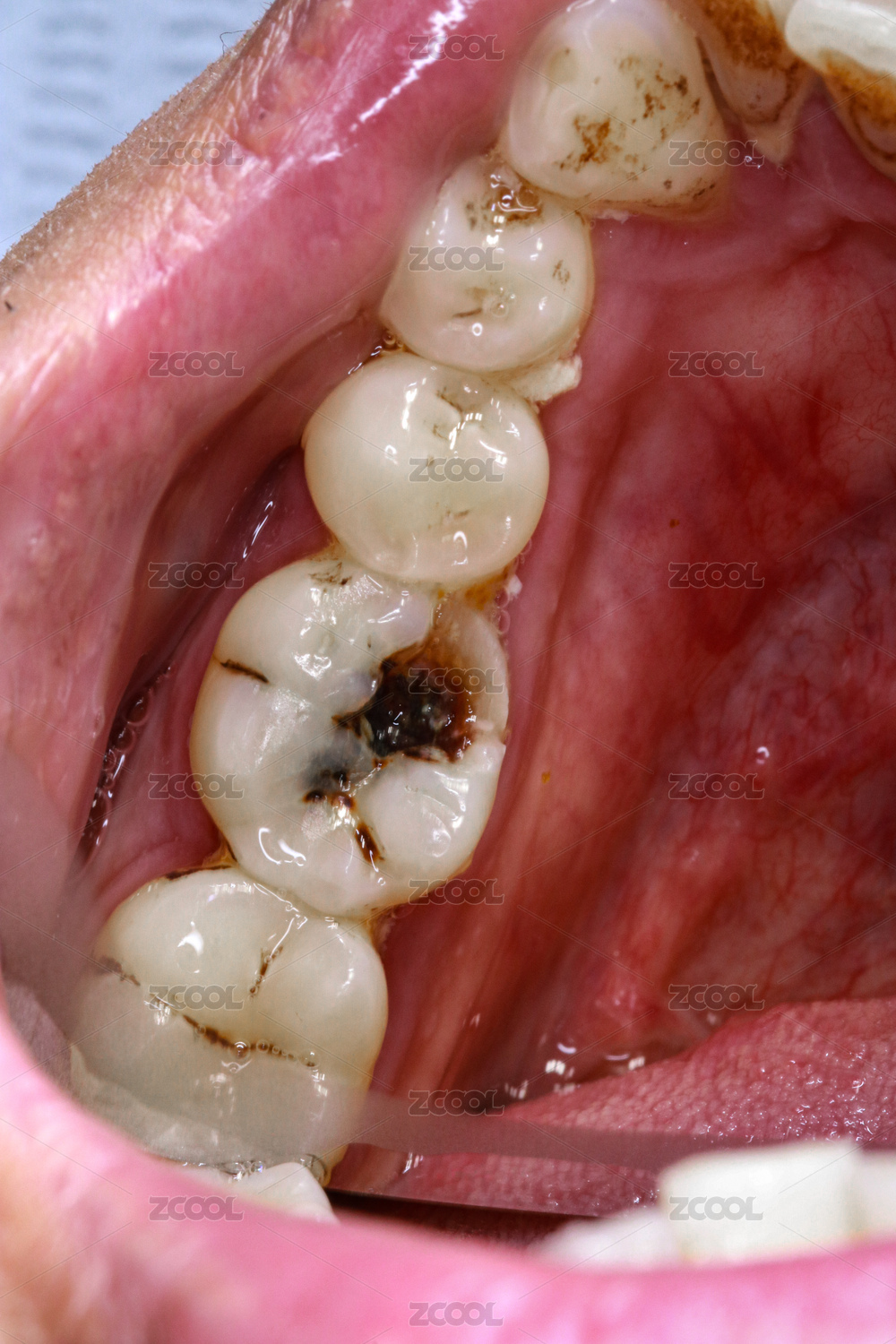 蛀牙牙齒上布滿細(xì)菌病菌
