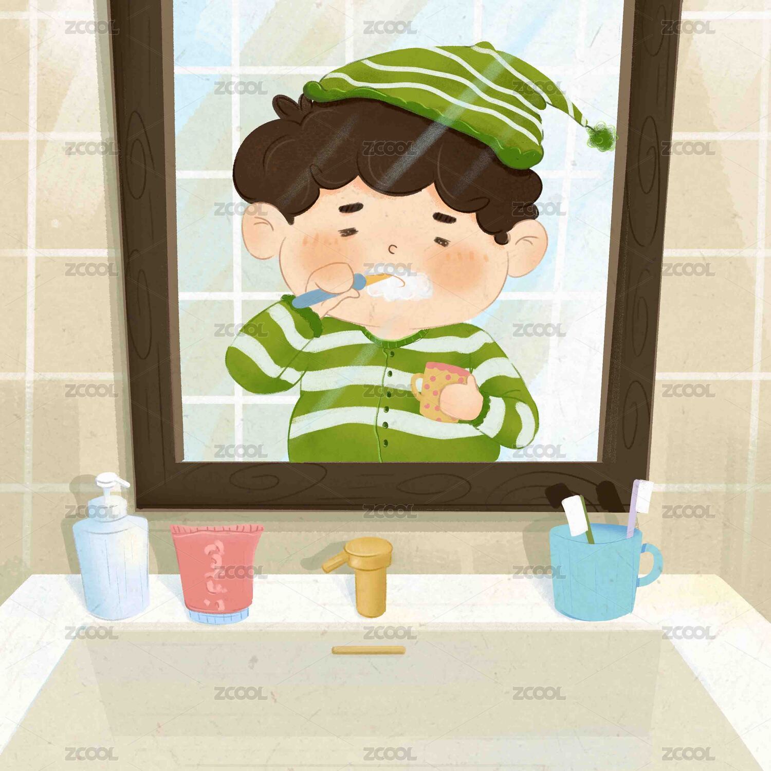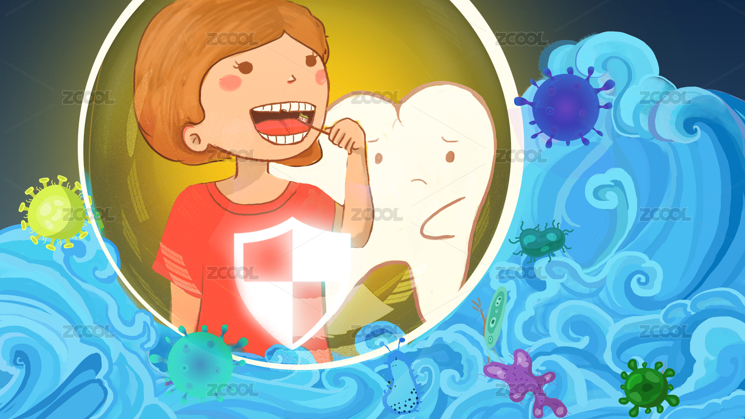 保護(hù)牙齒勤刷牙預(yù)防蛀牙兒童插畫