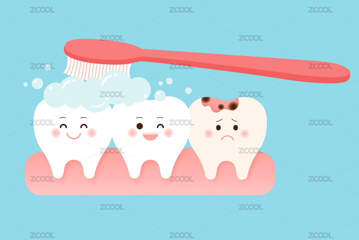 蛀牙刷牙牙齒牙齦矢量插畫