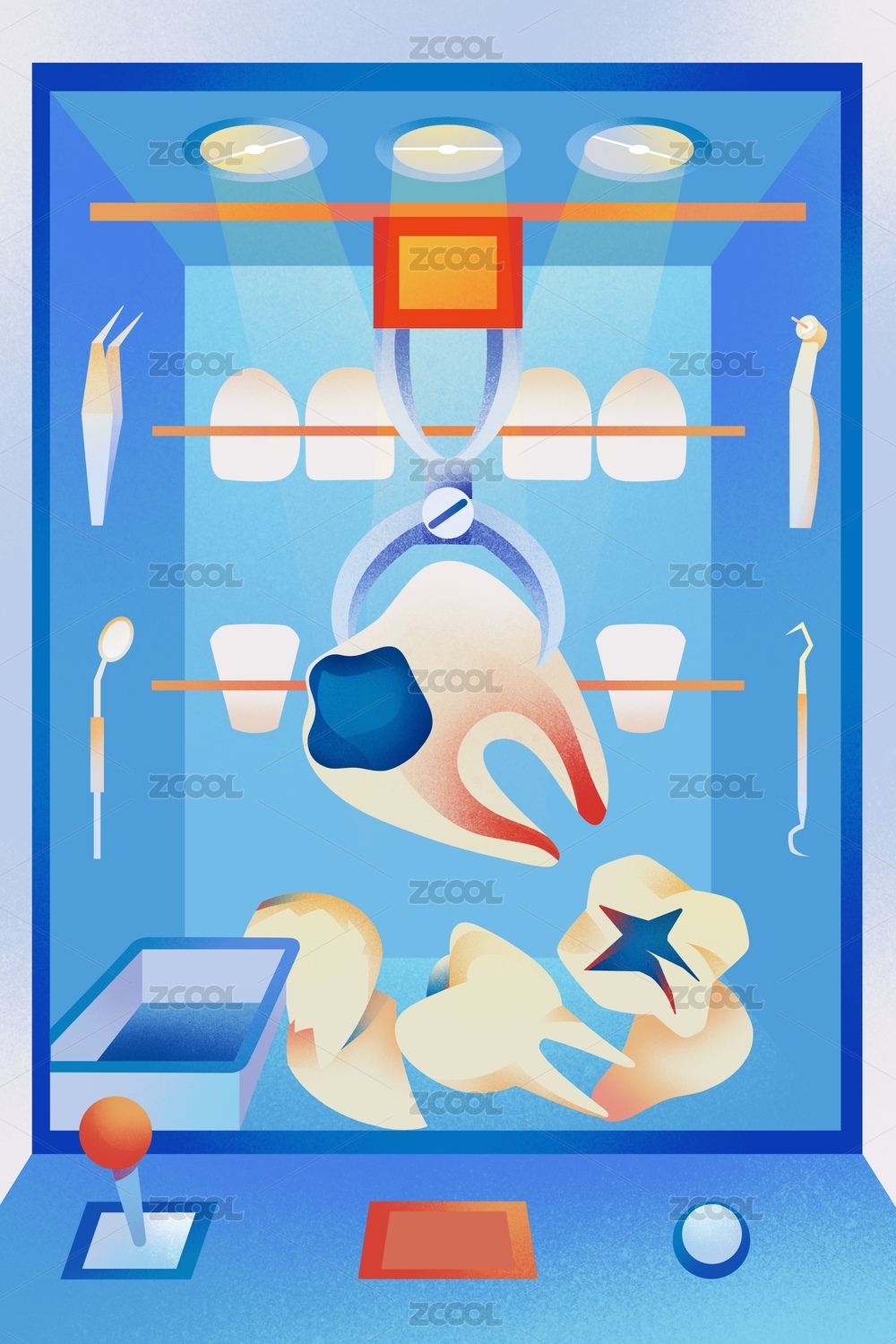扁平噪點(diǎn)風(fēng)抓娃娃機(jī)蛀牙齲齒保健醫(yī)療插畫