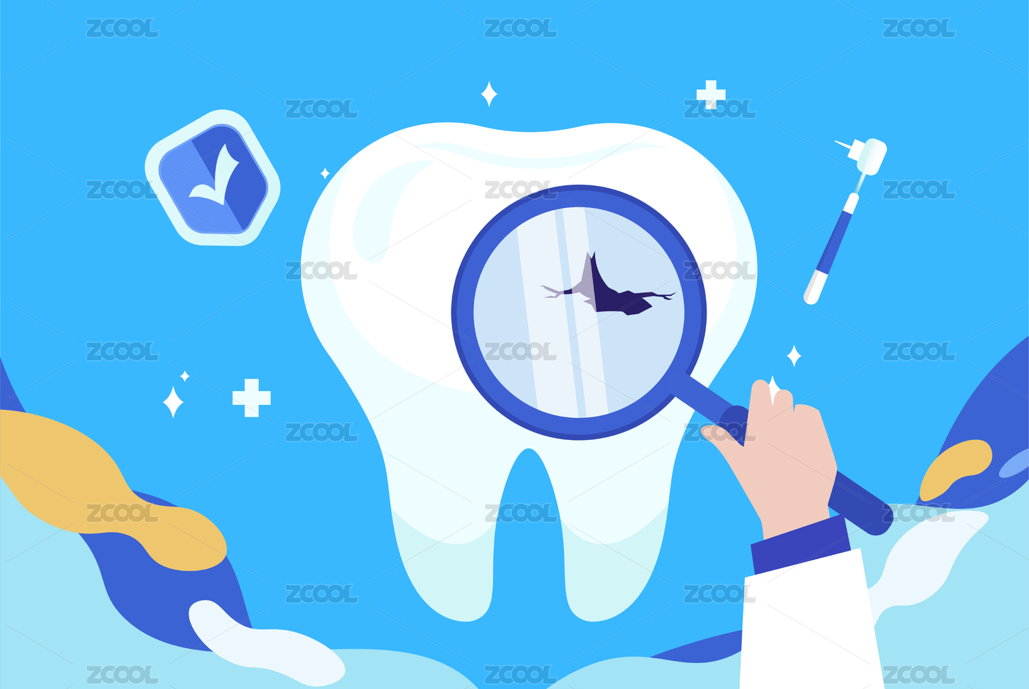 檢查蛀牙牙齒插畫