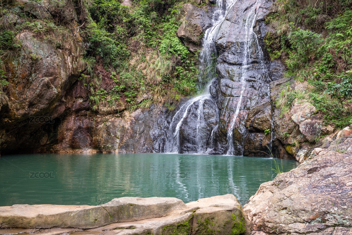 夏天浙江溫州仙巖梅雨潭瀑布