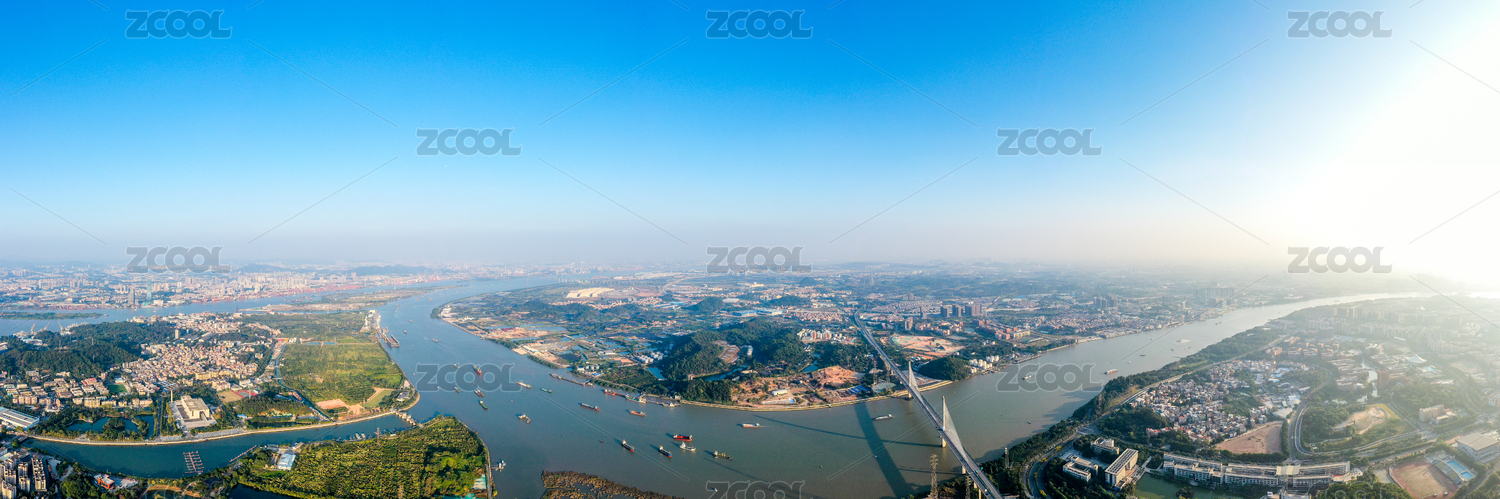 航拍中國廣東廣州番禺區(qū)珠江后航道河流水系