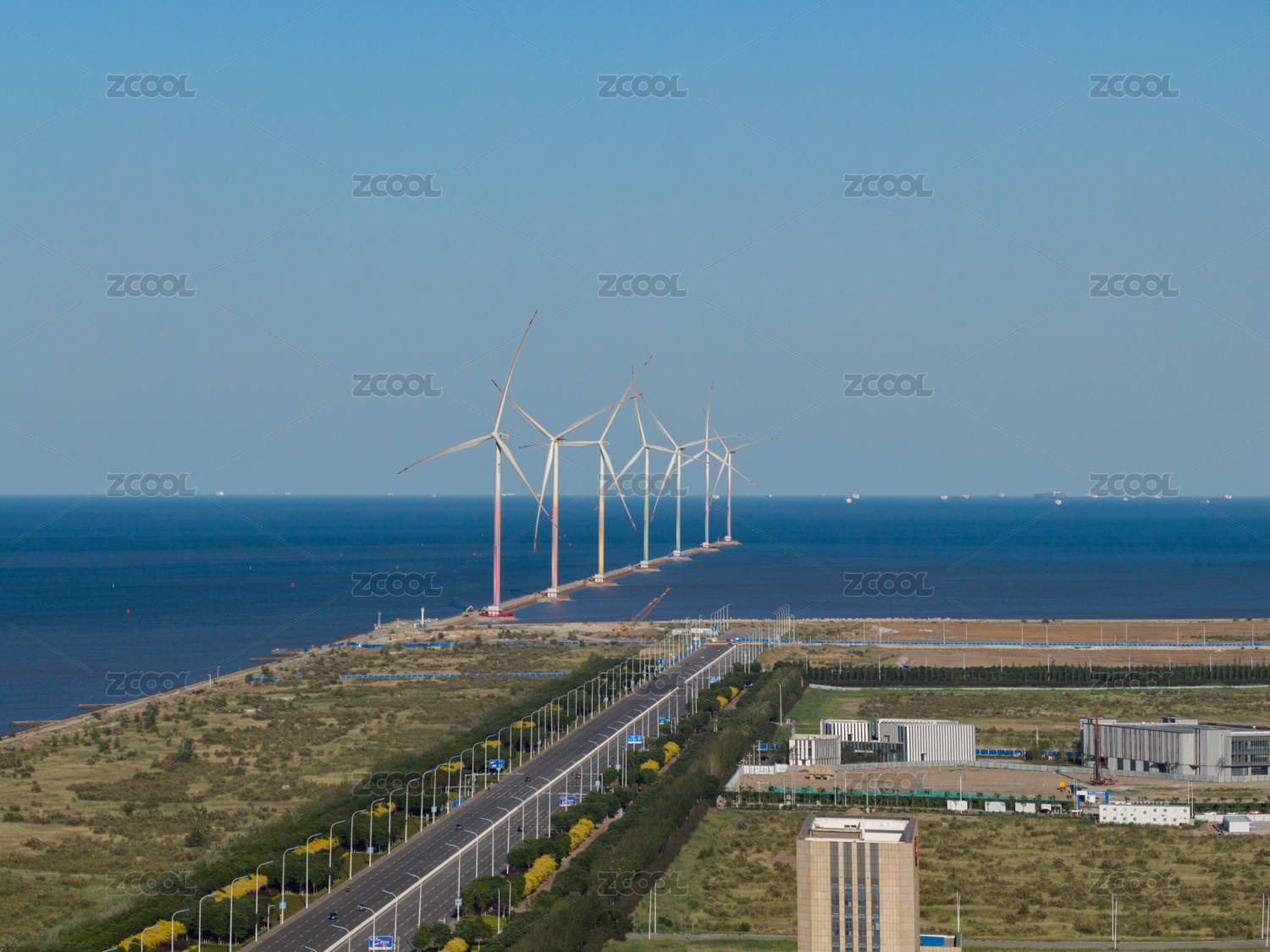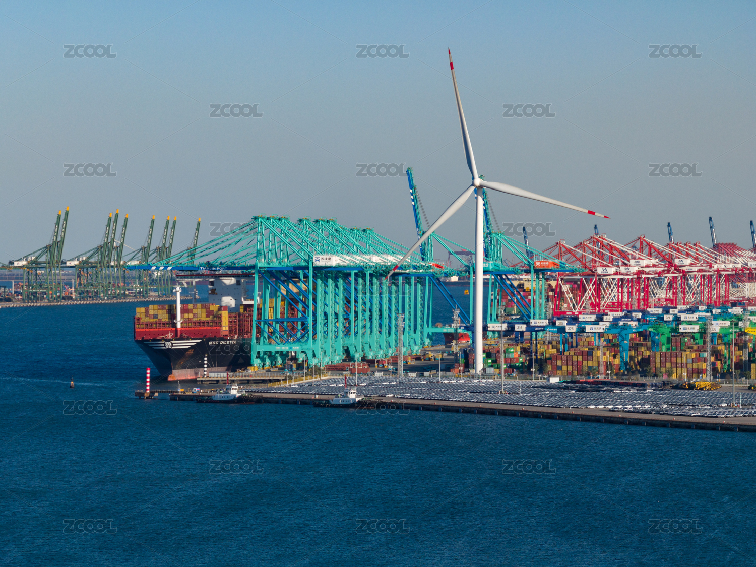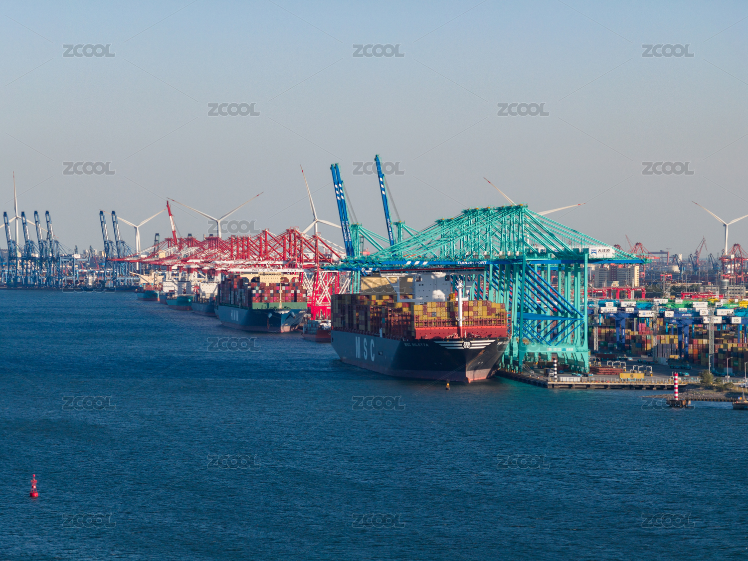 航拍天津港碼頭航道