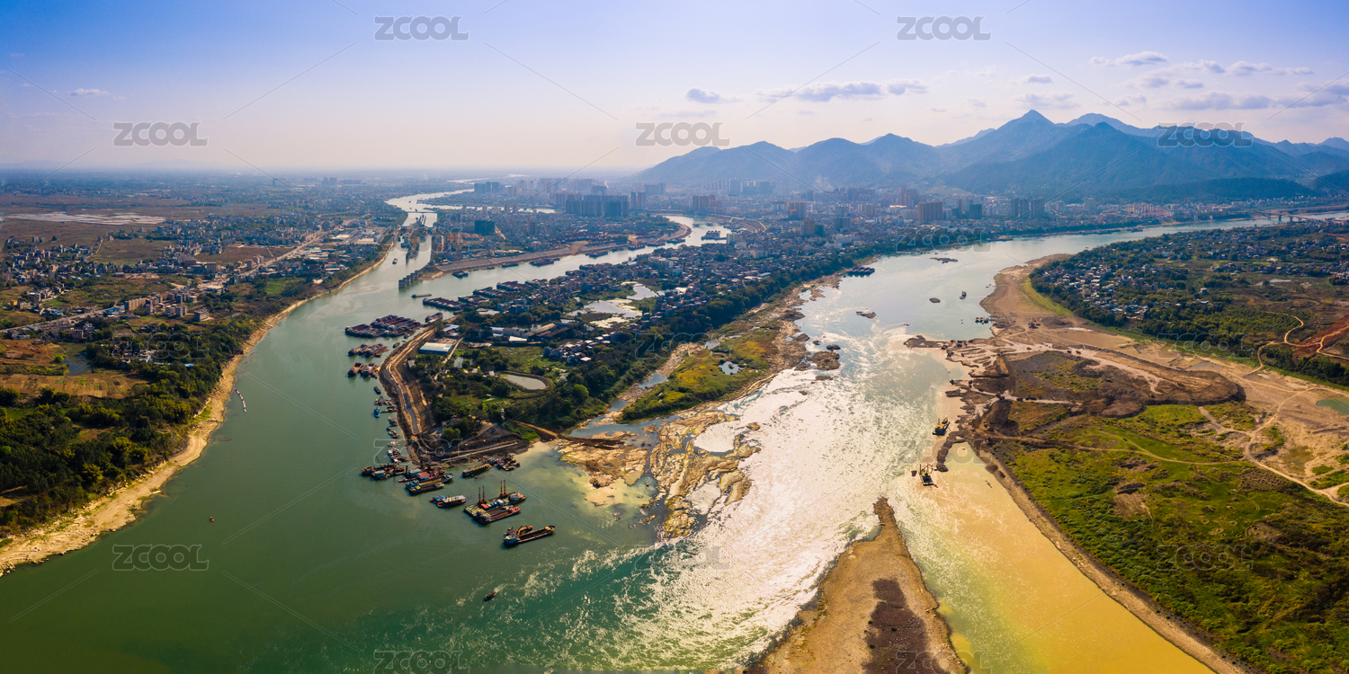 航拍中國廣西桂平市三江口航道