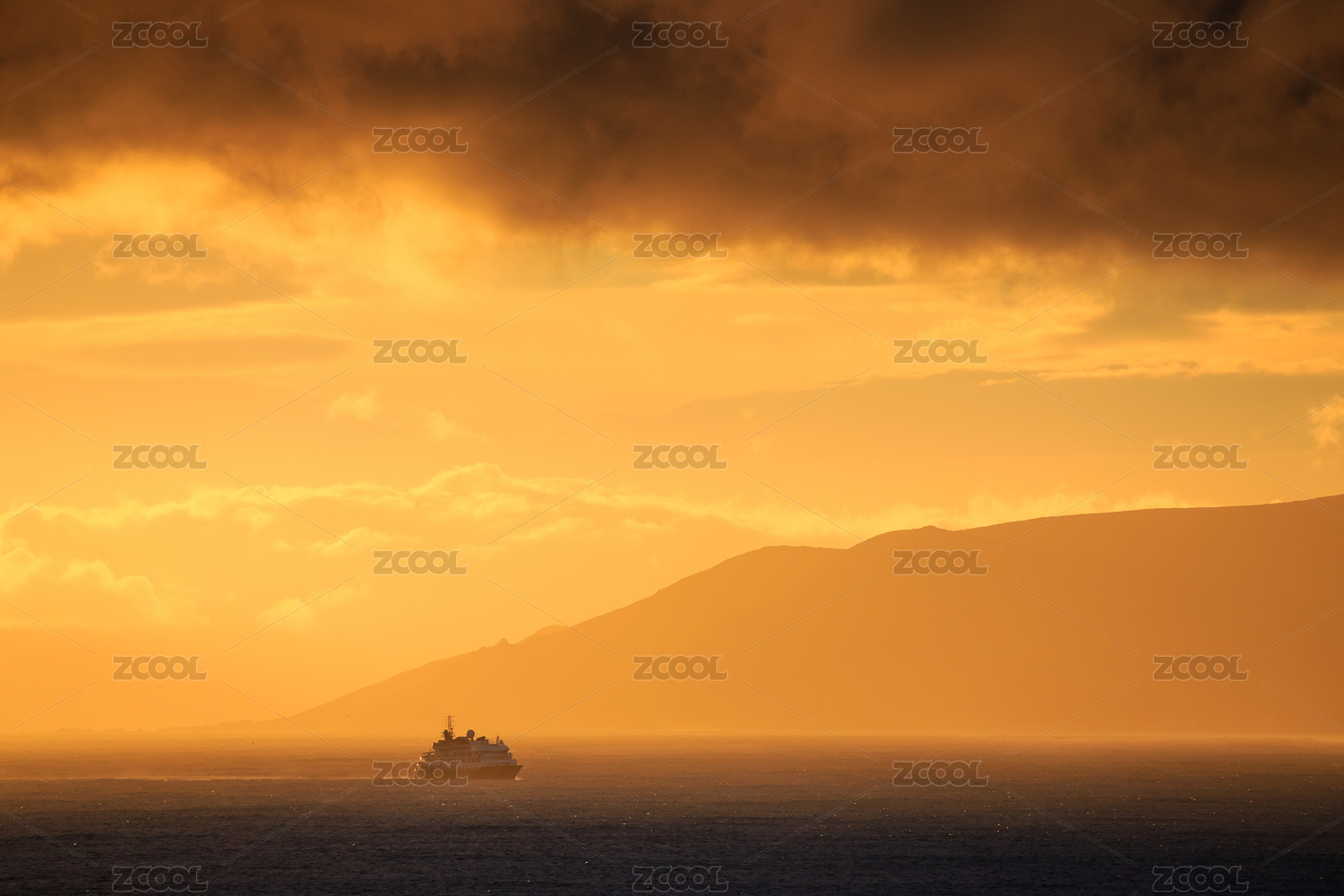 南美南冰洋冰川航道的晚霞
