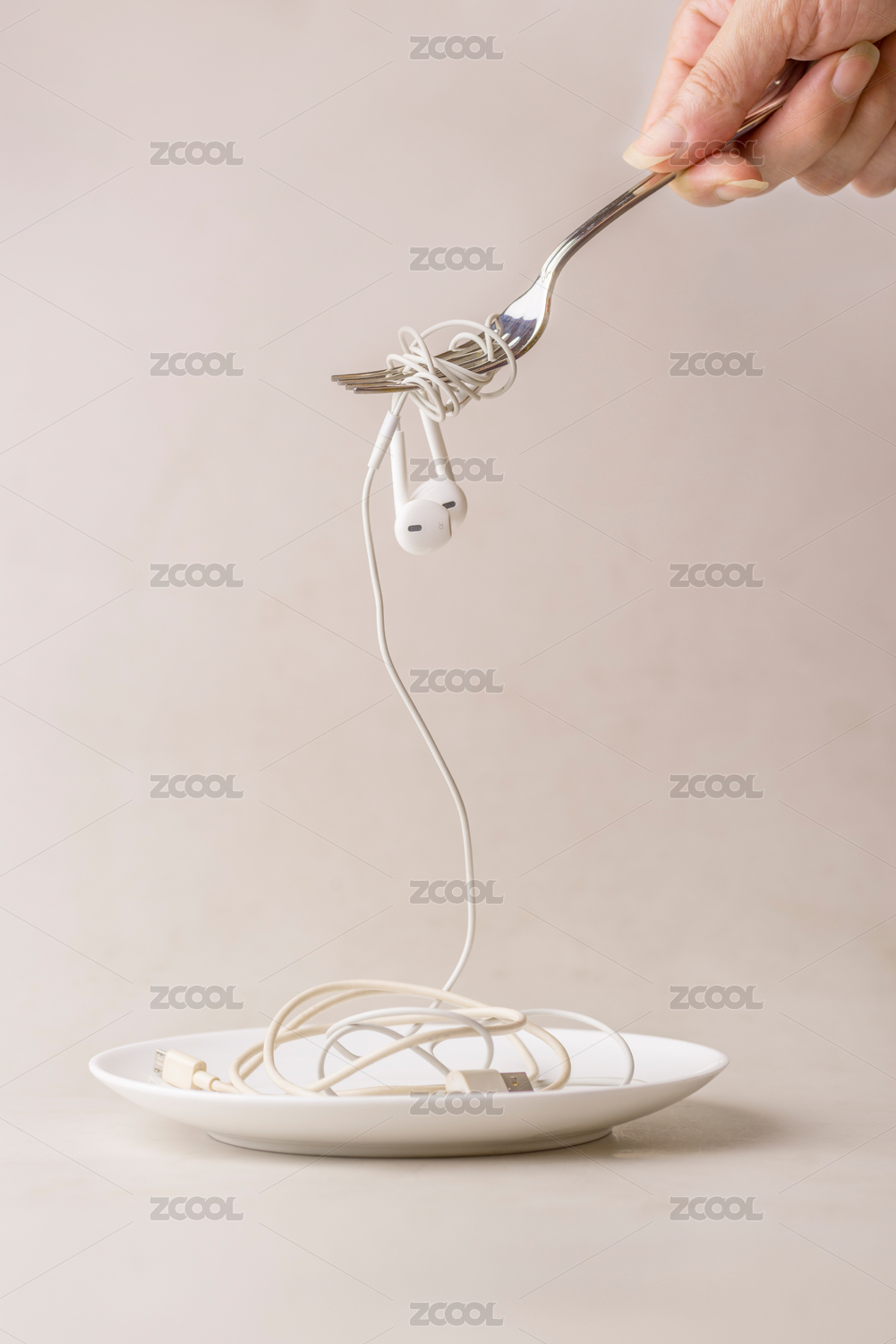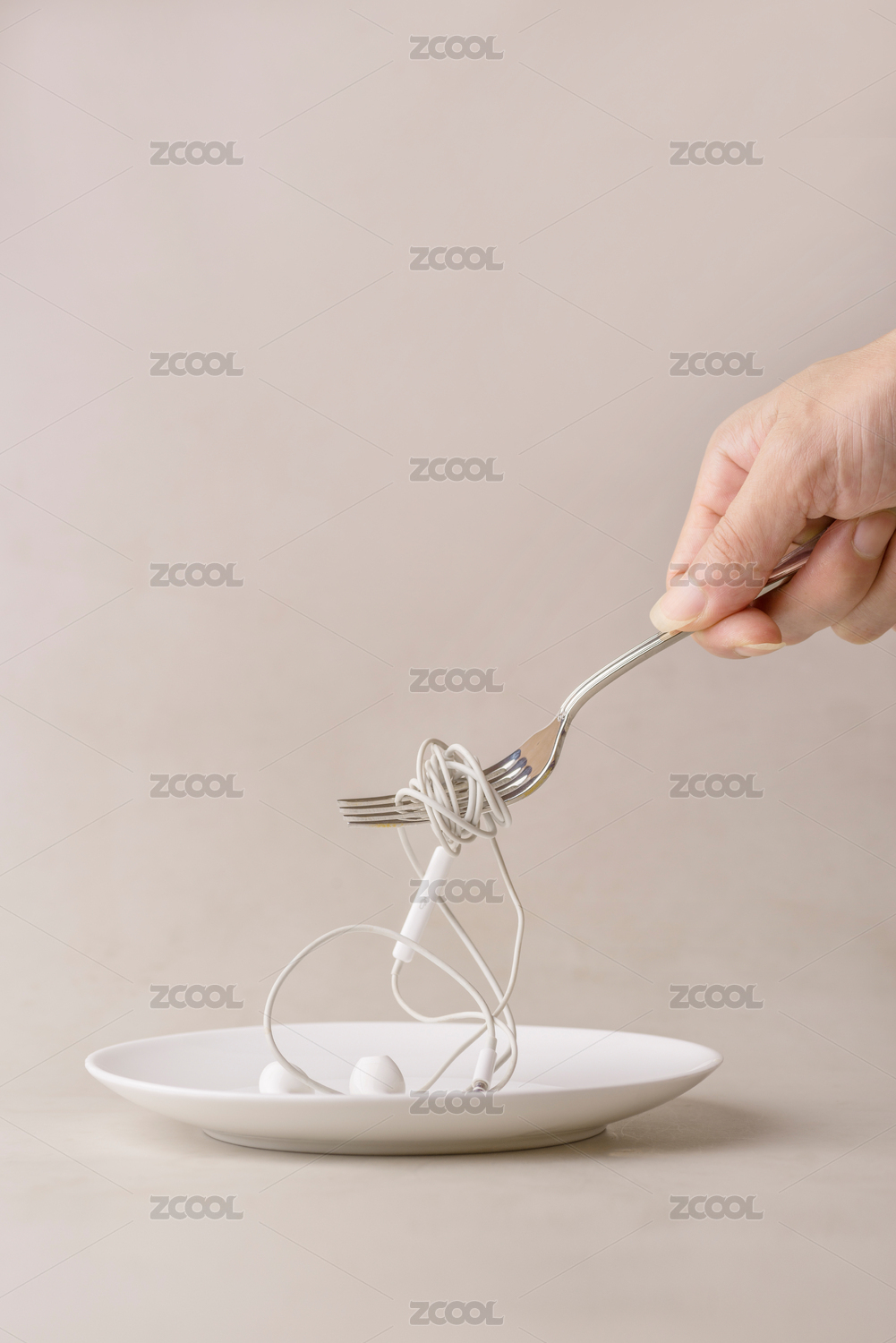 餐叉上纏繞的耳機(jī)