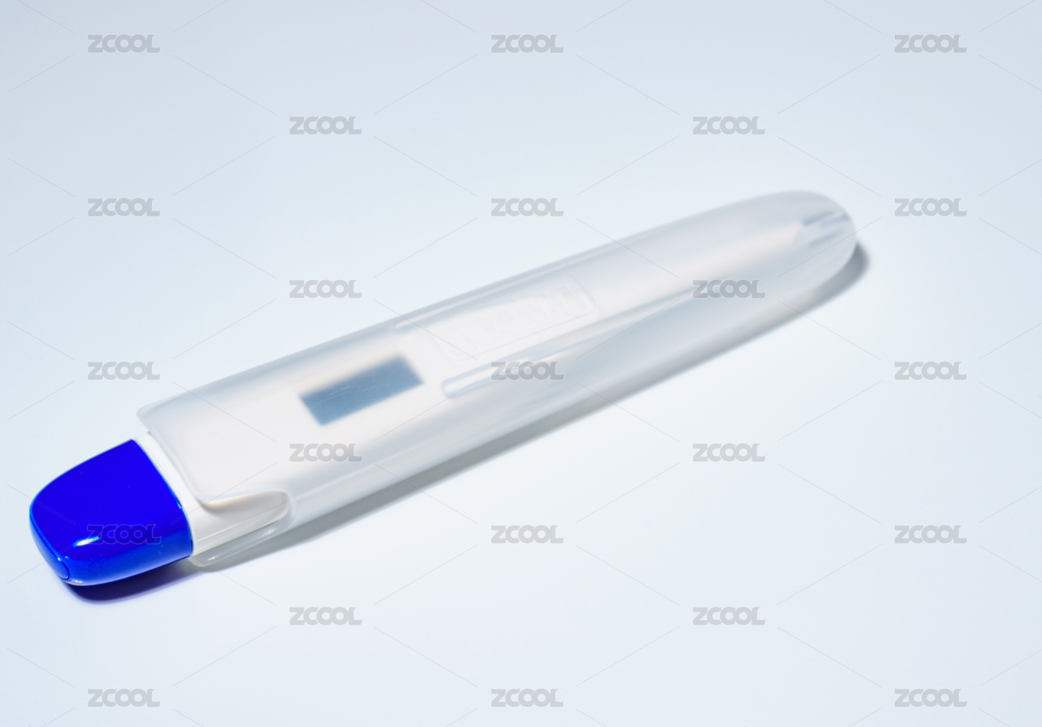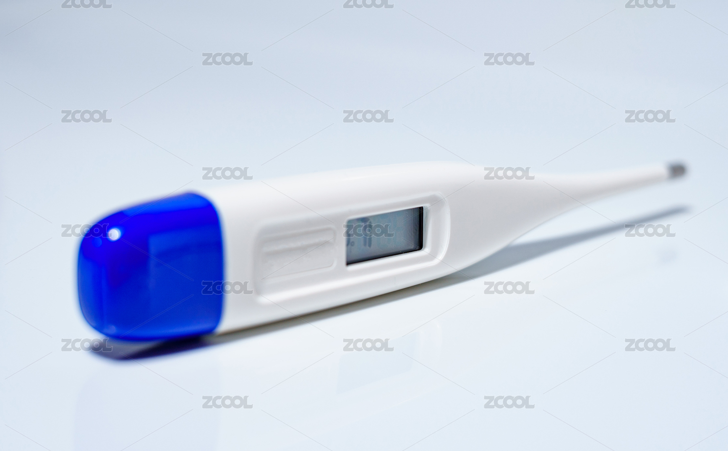 藍(lán)色灰色口罩和電子體溫計(jì)