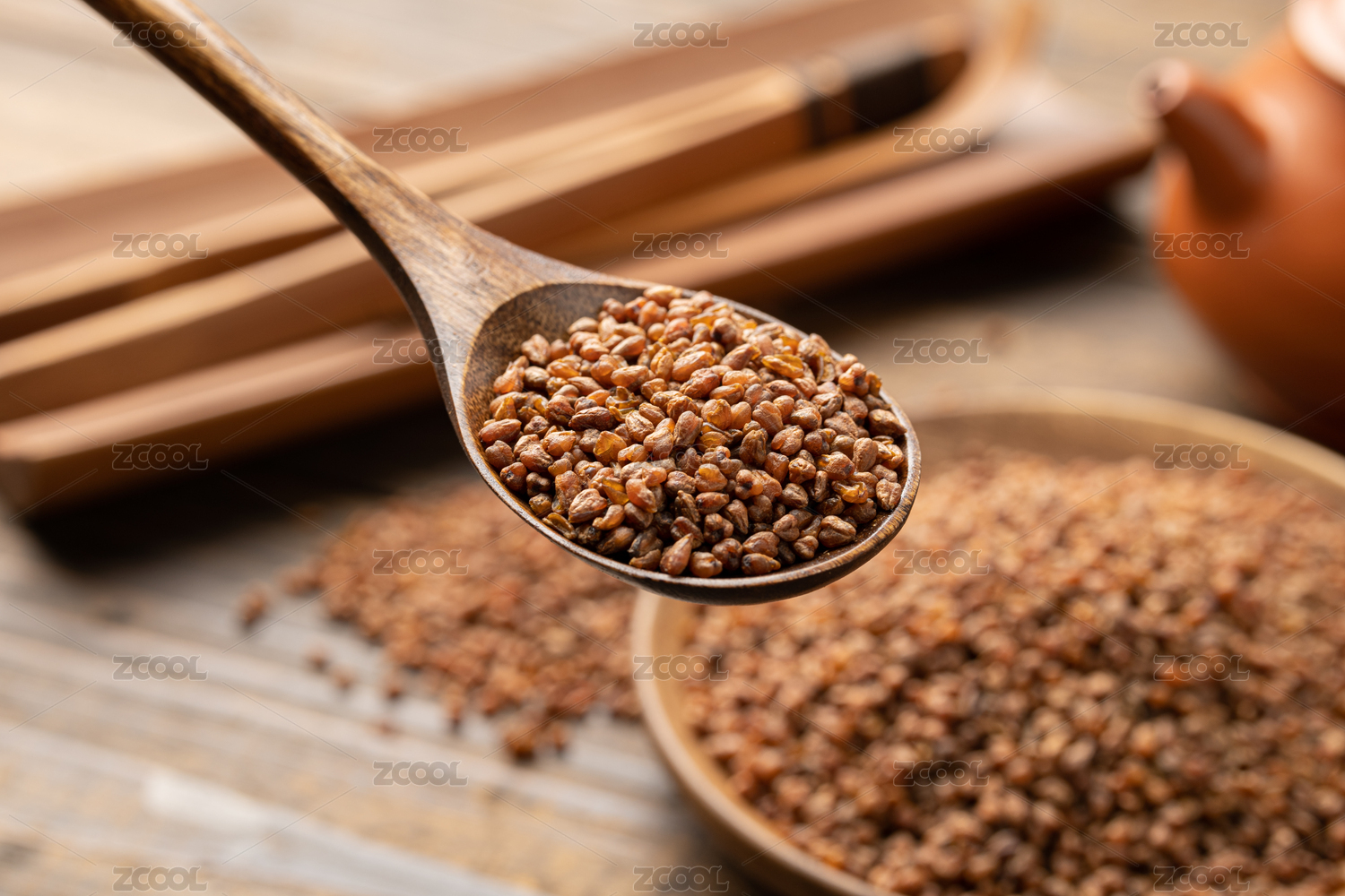 勺子里的黑苦蕎特寫