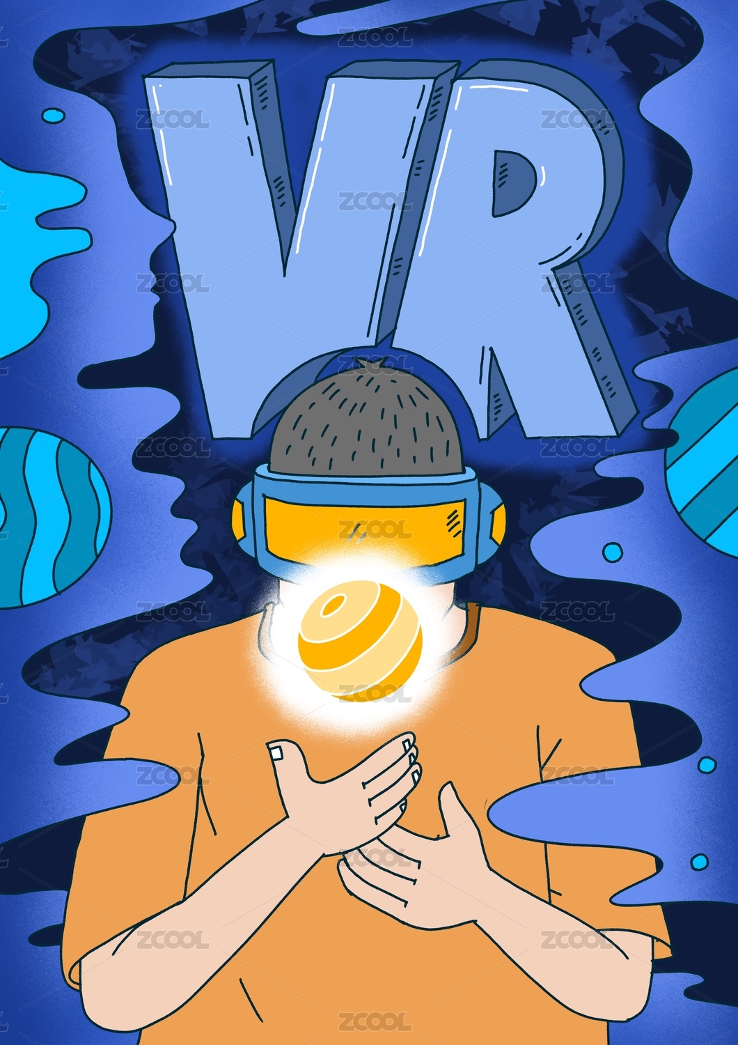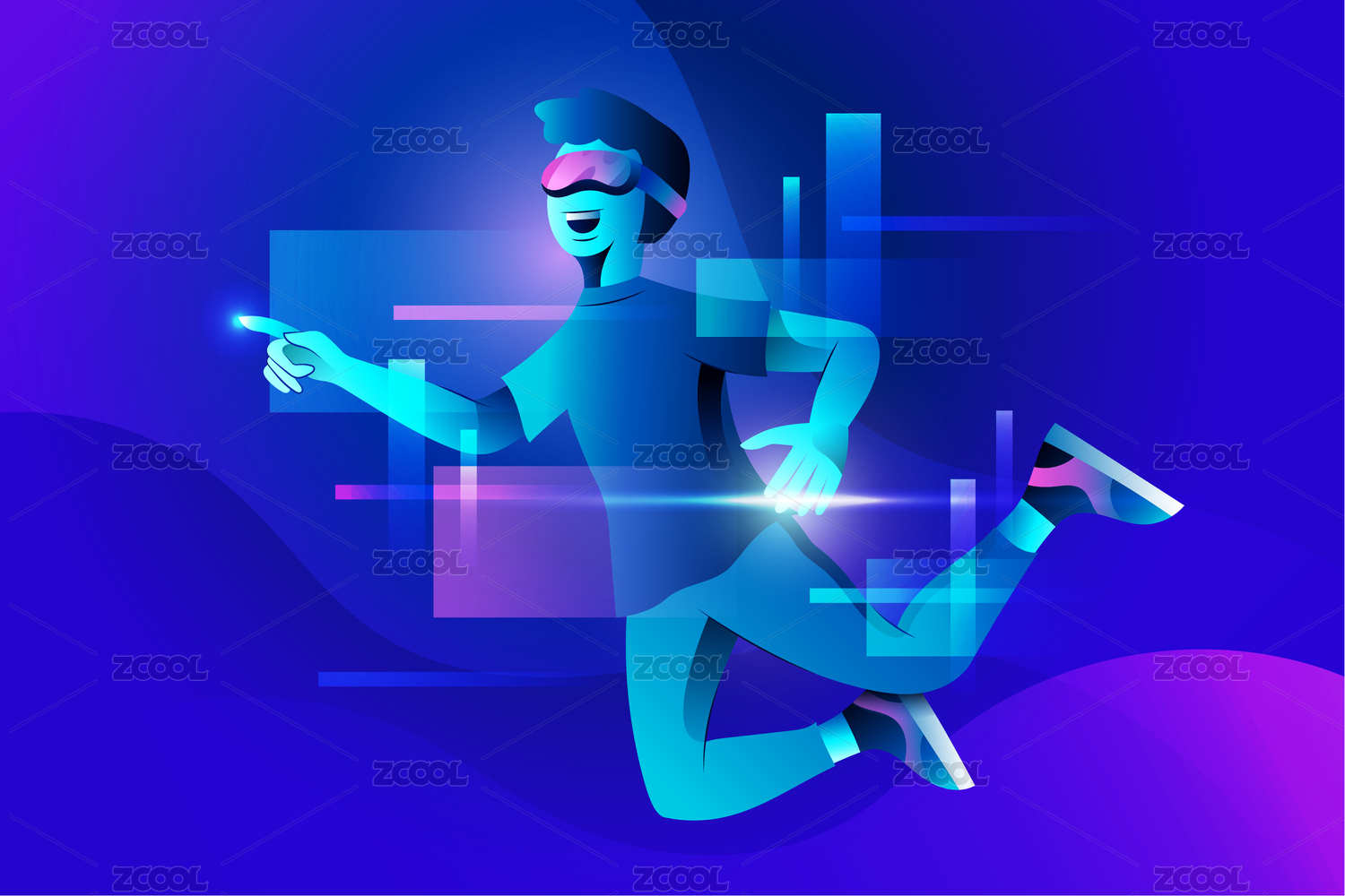 科幻虛擬現(xiàn)實(shí)空間場(chǎng)景插畫