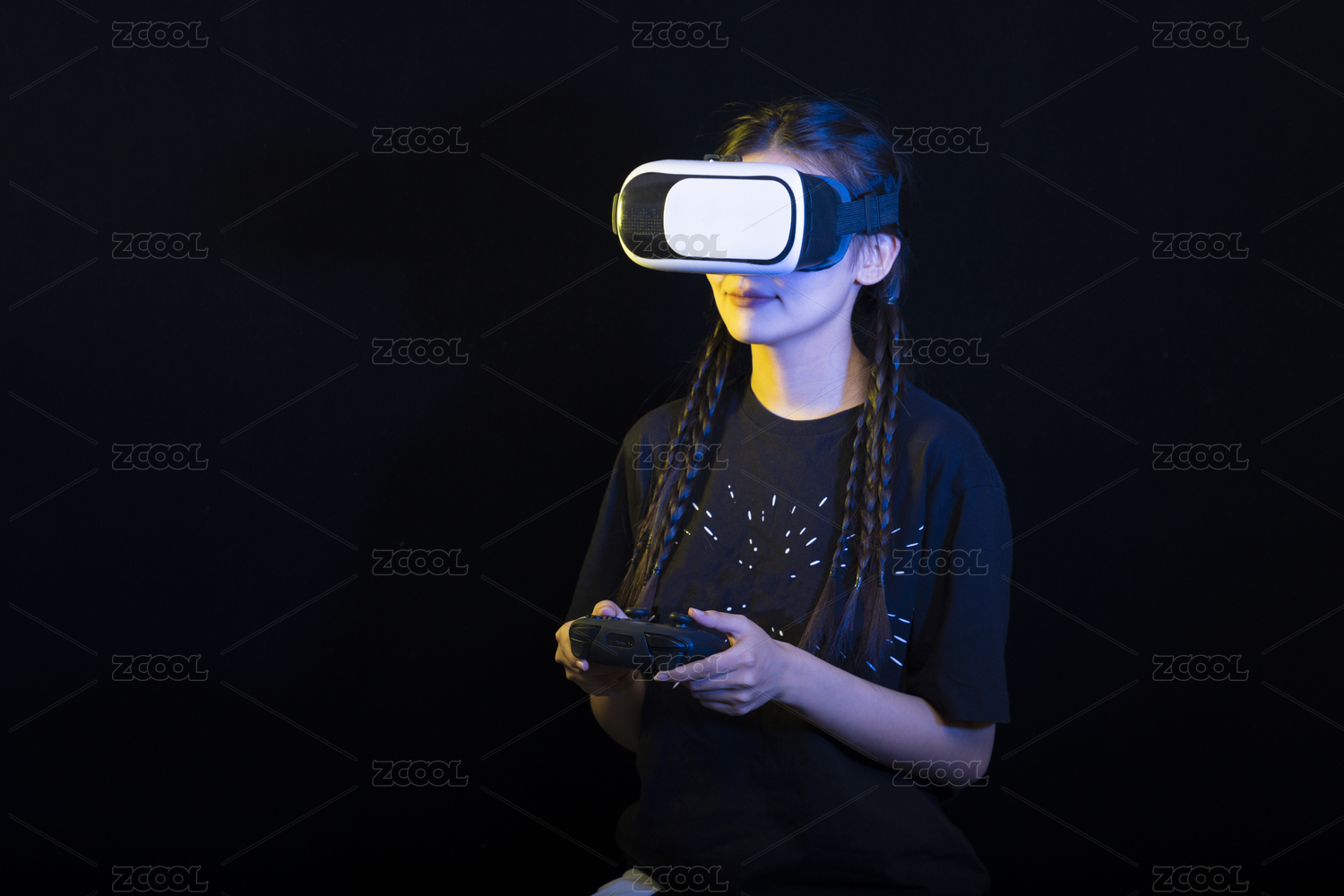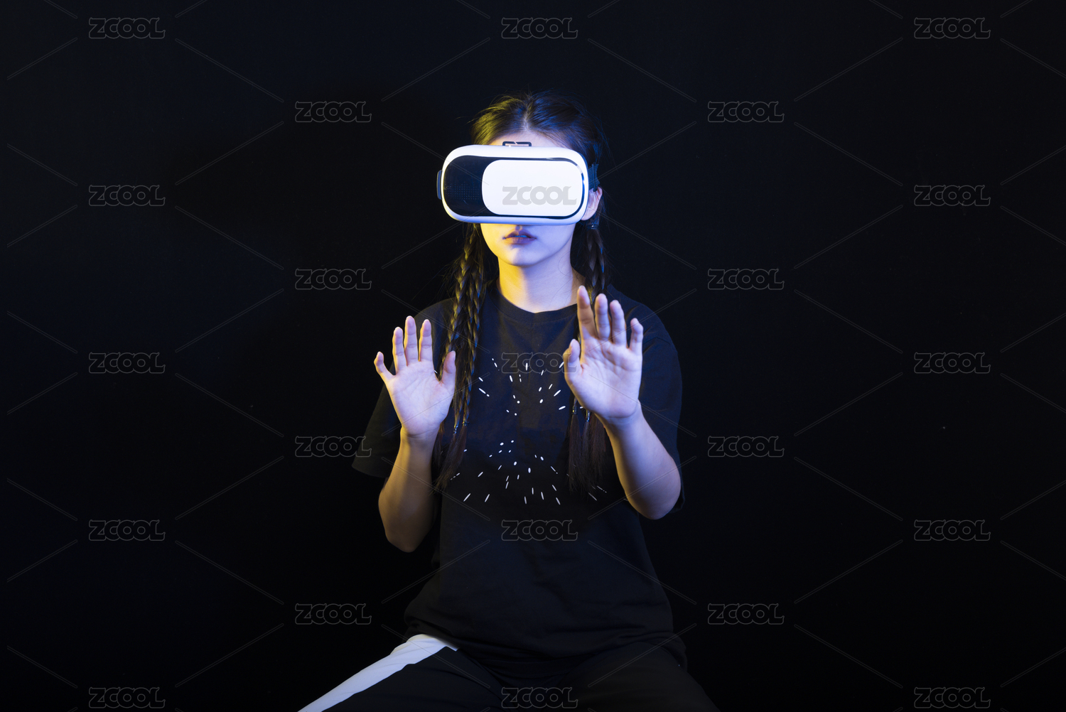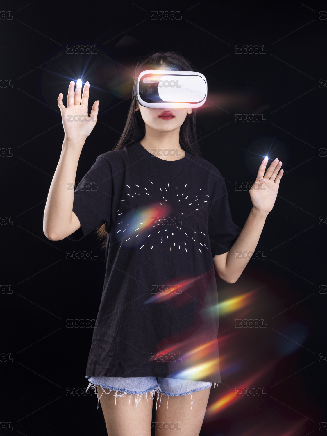 女子體驗(yàn)虛擬現(xiàn)實(shí)技術(shù)
