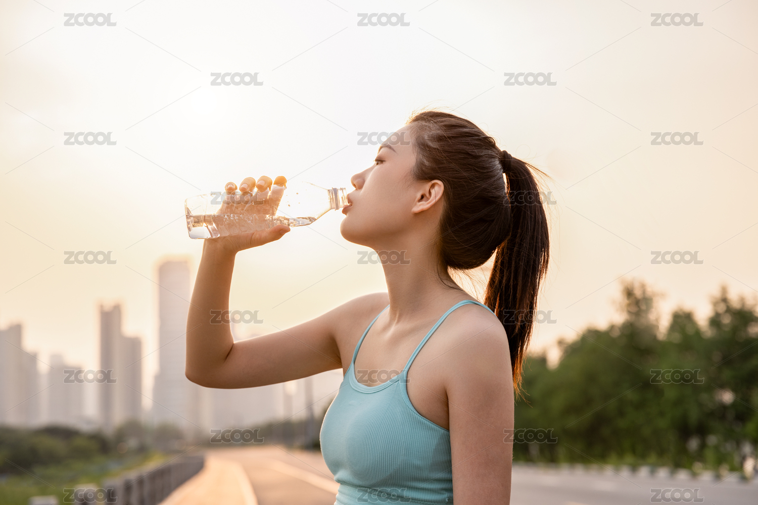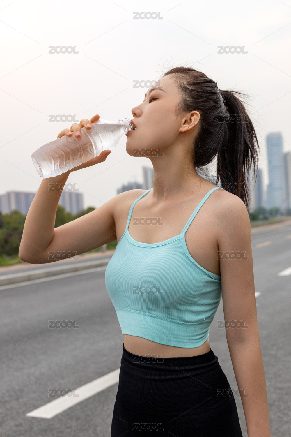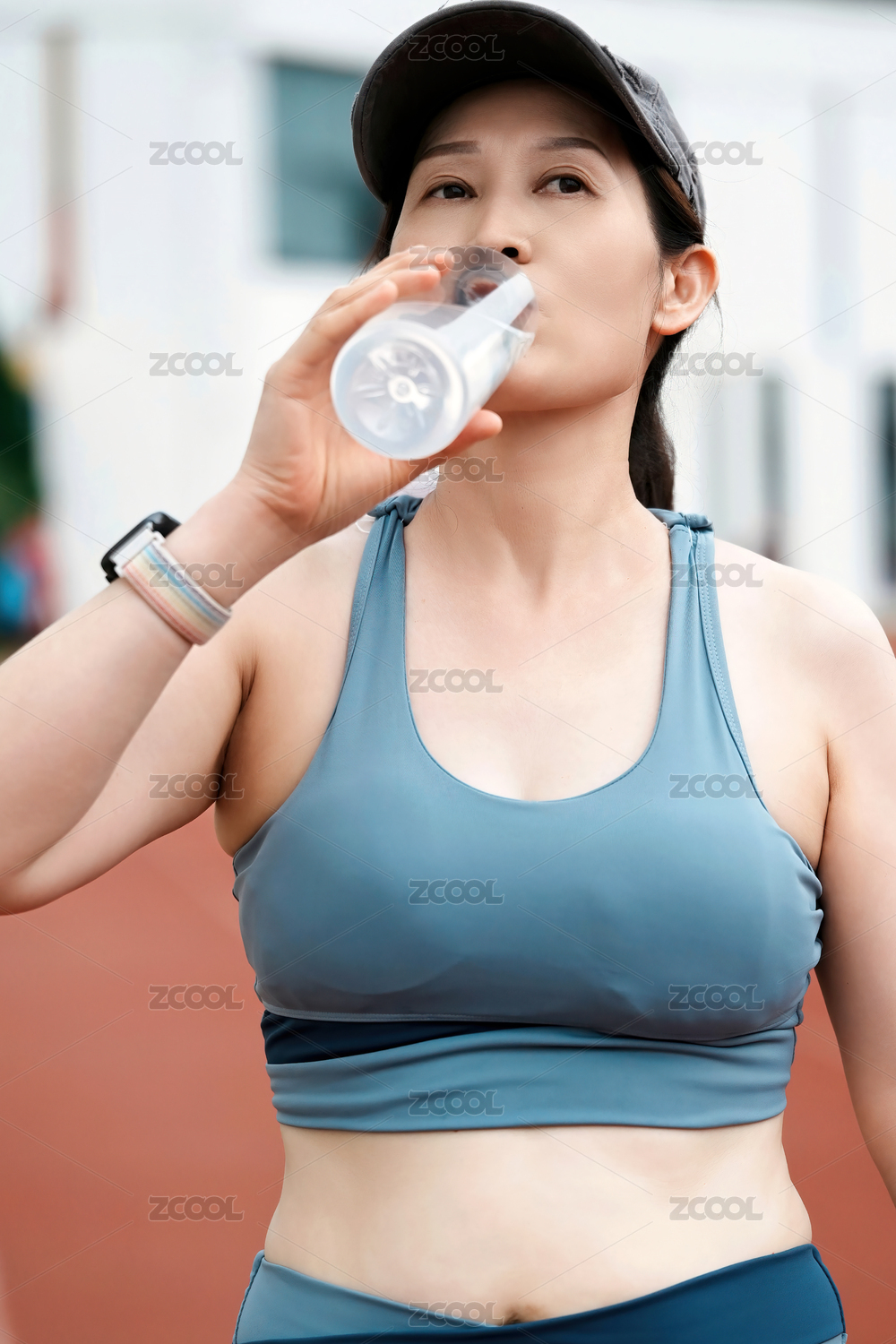 運動后喝水的女人