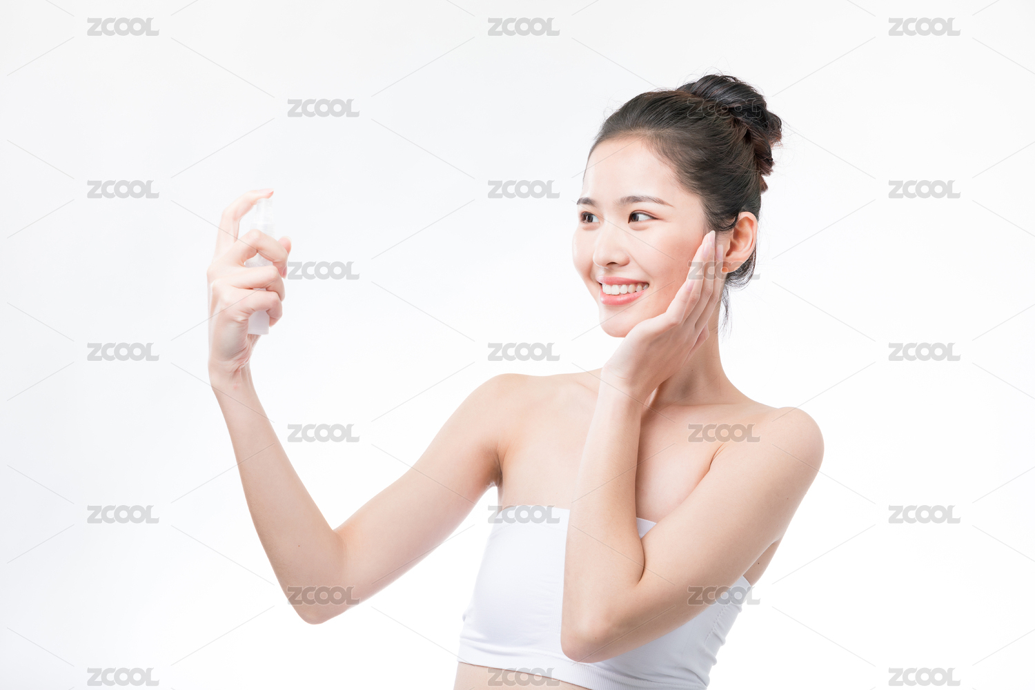 年輕女性使用噴霧補水護膚