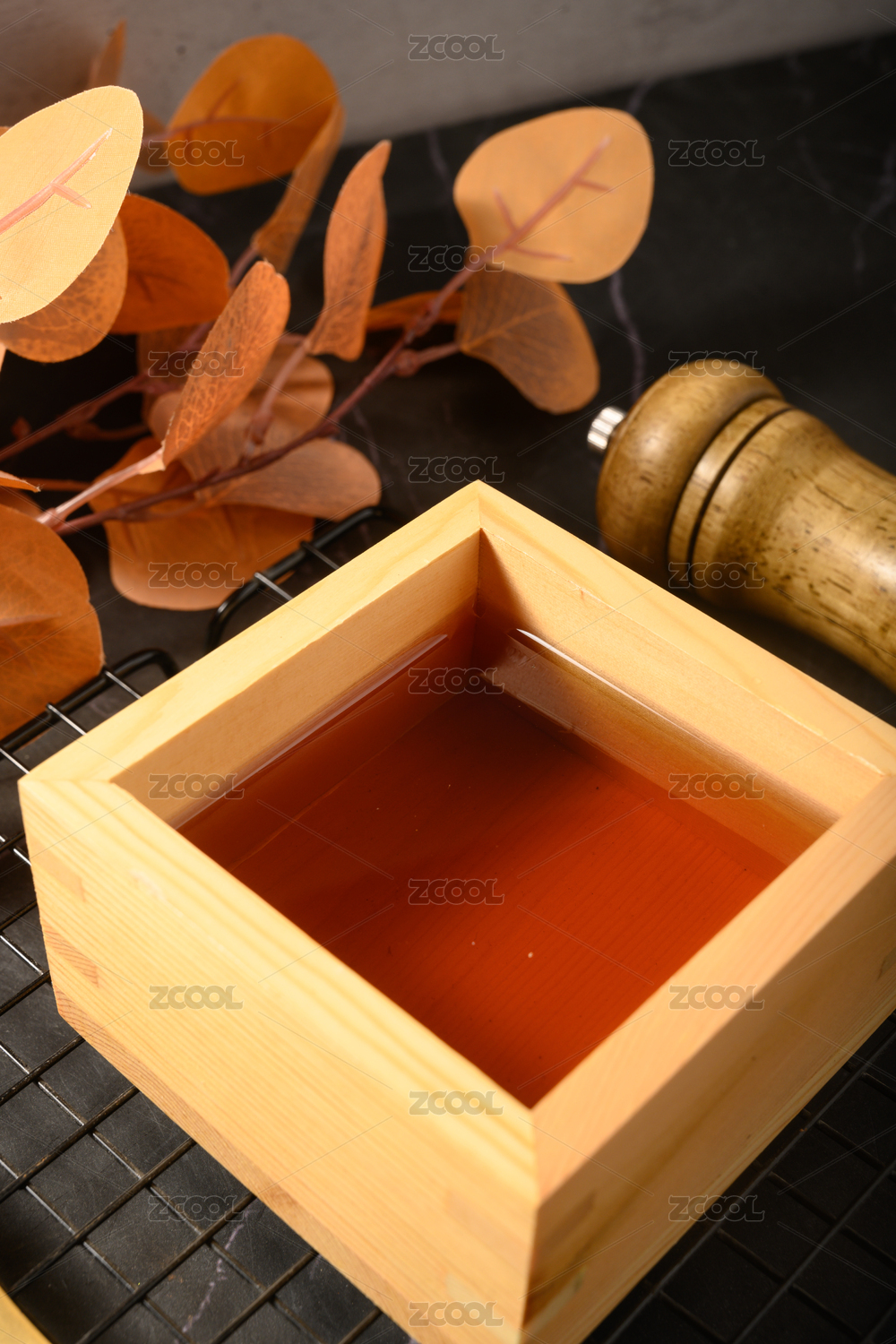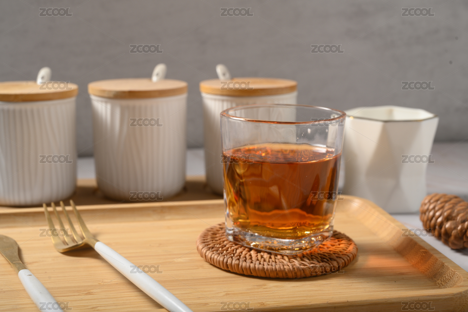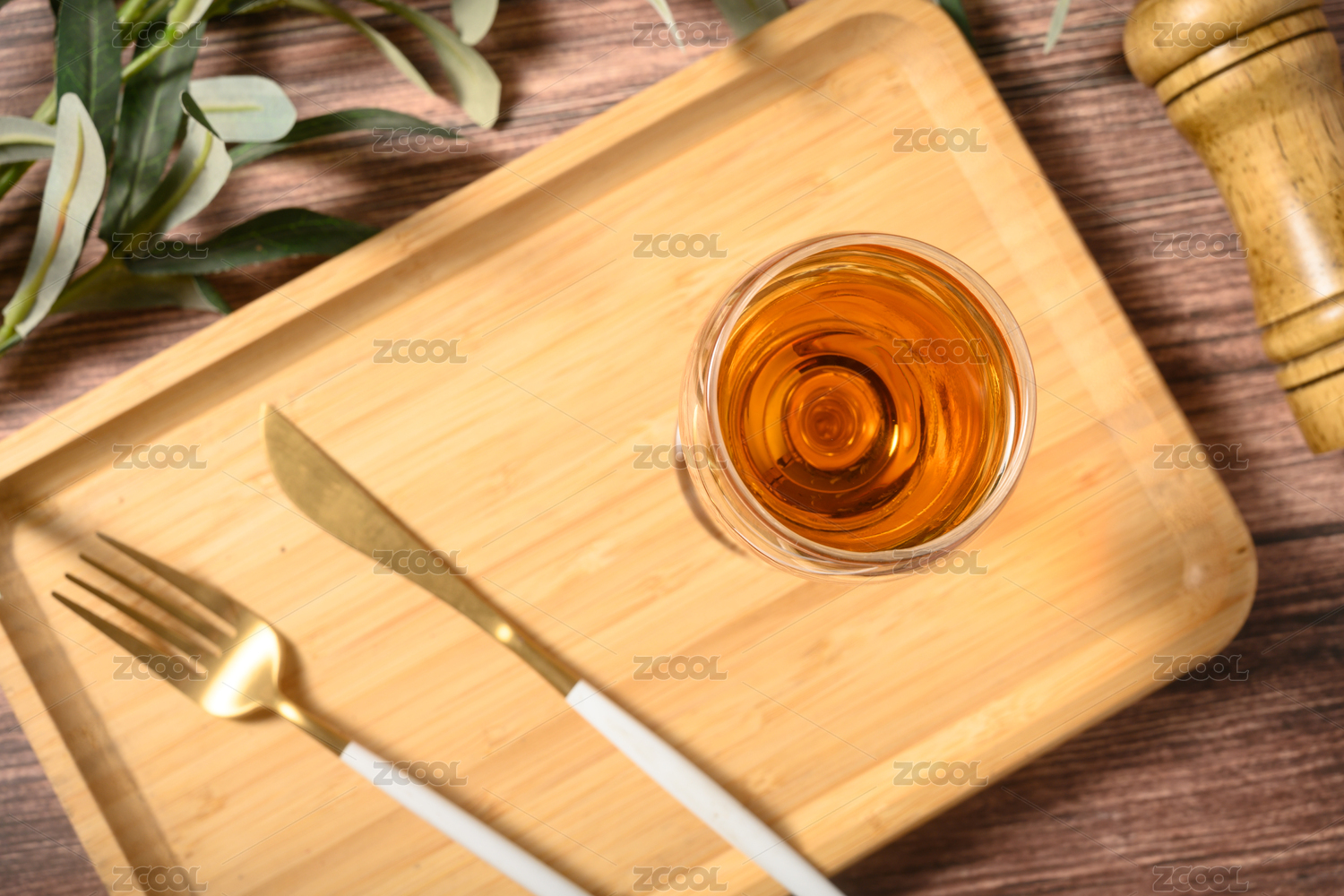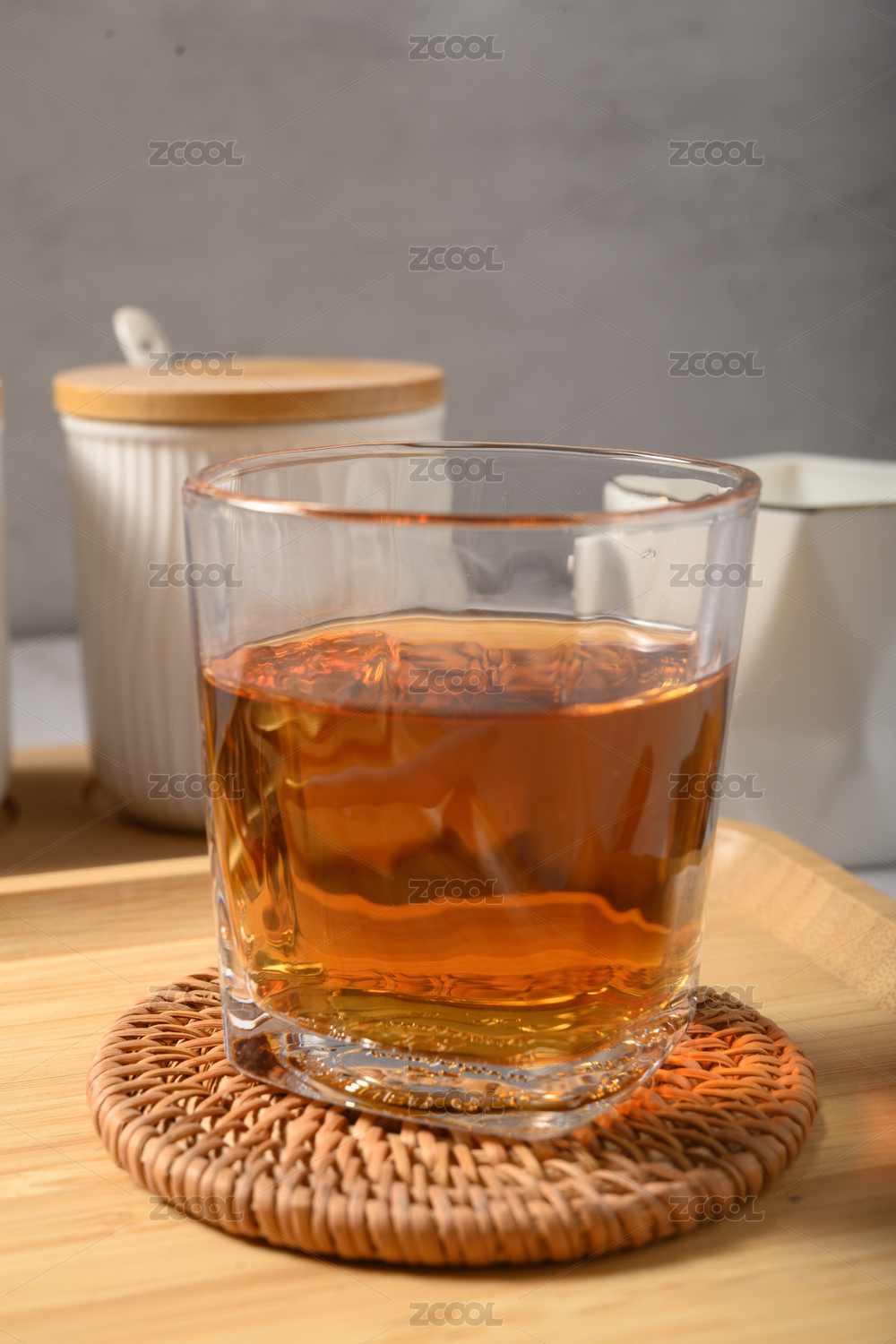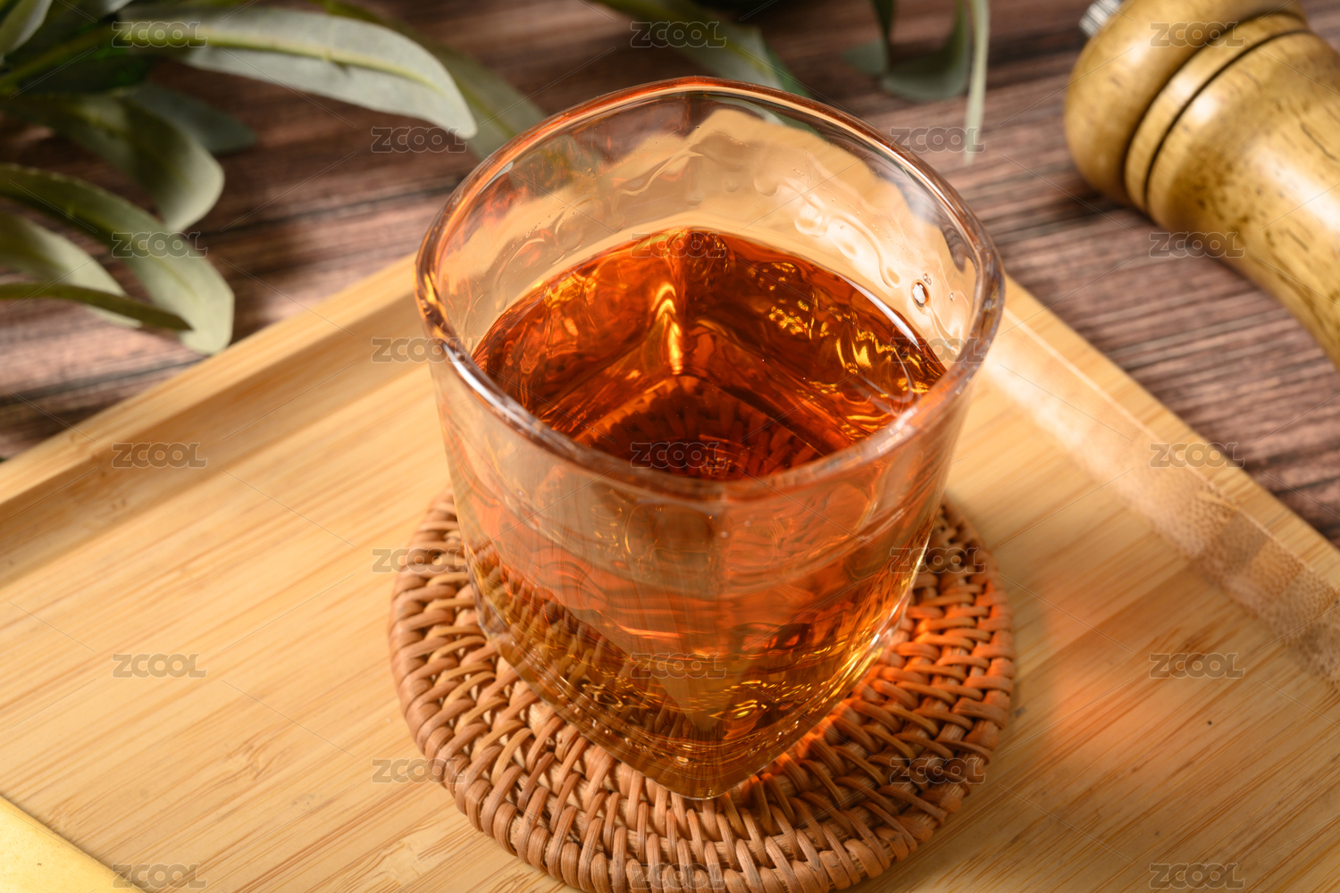 桌面上的杯子里的香氣四溢的梅子酒