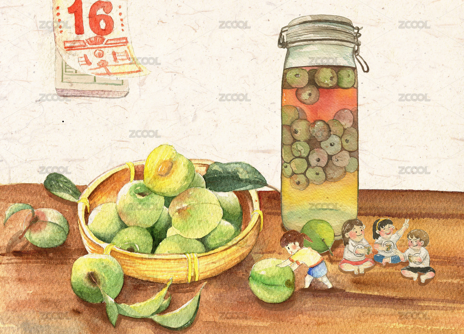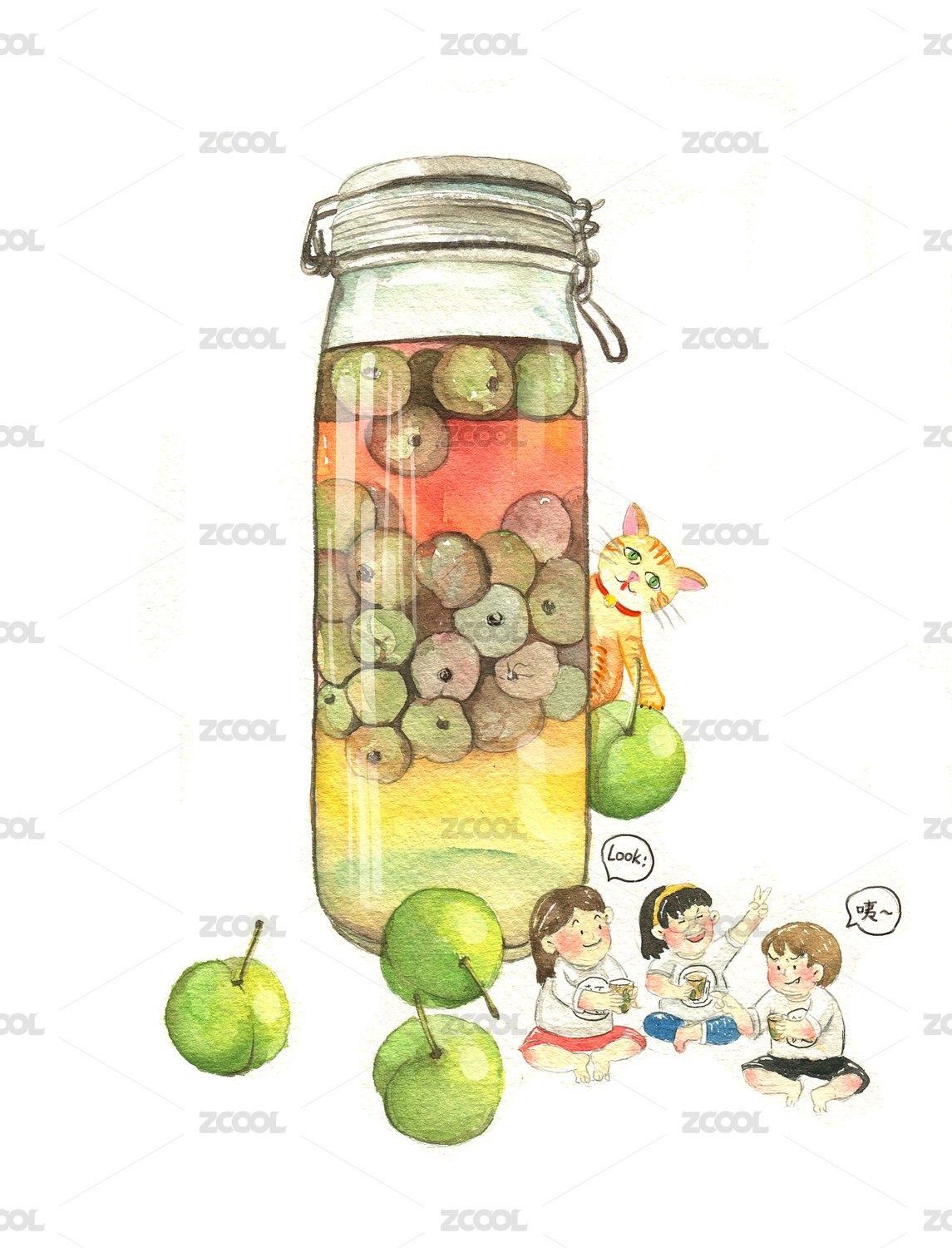 水彩食物之梅子酒青梅酒