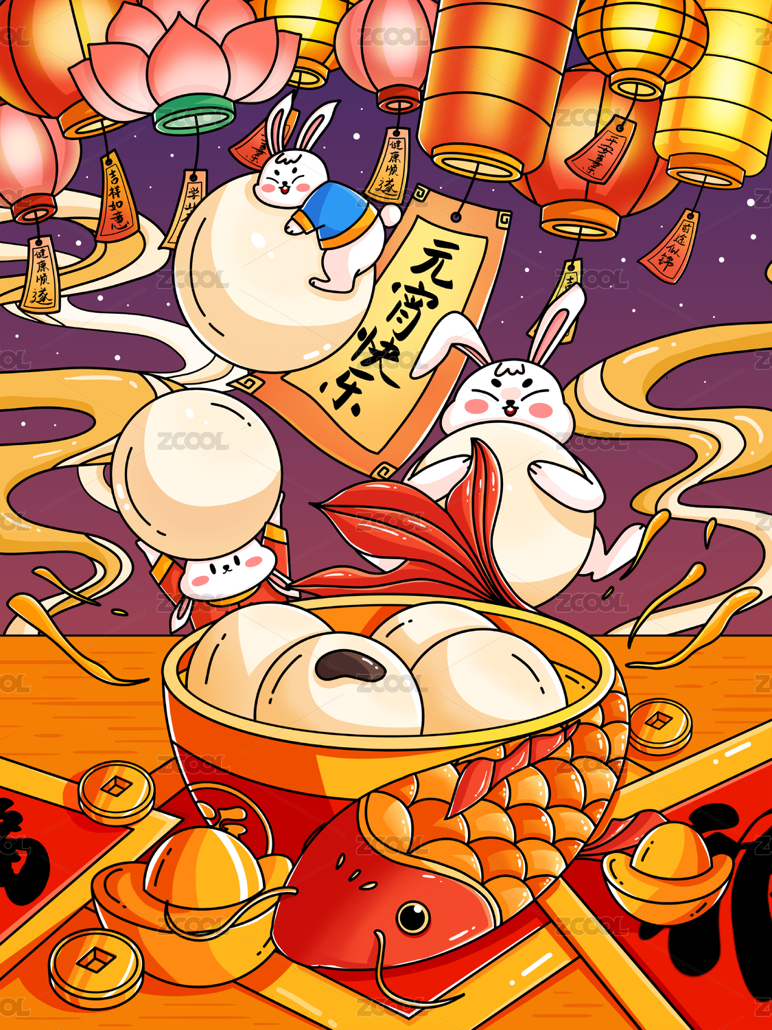 新春兔年正月十五元宵節(jié)兔子鬧元宵