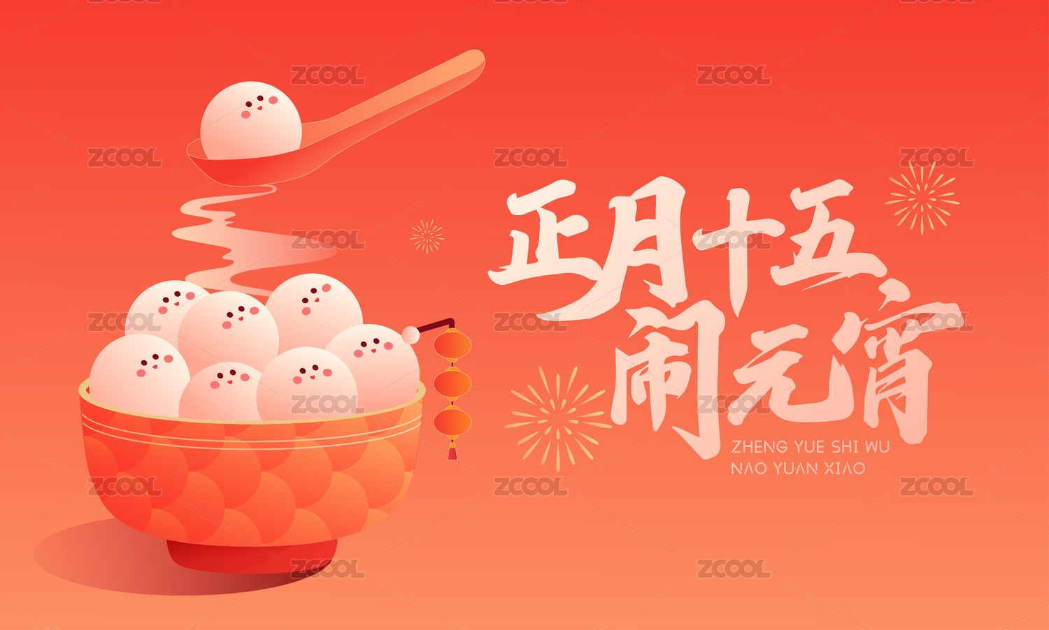 橫版元宵節(jié)橙色正月十五鬧元宵
