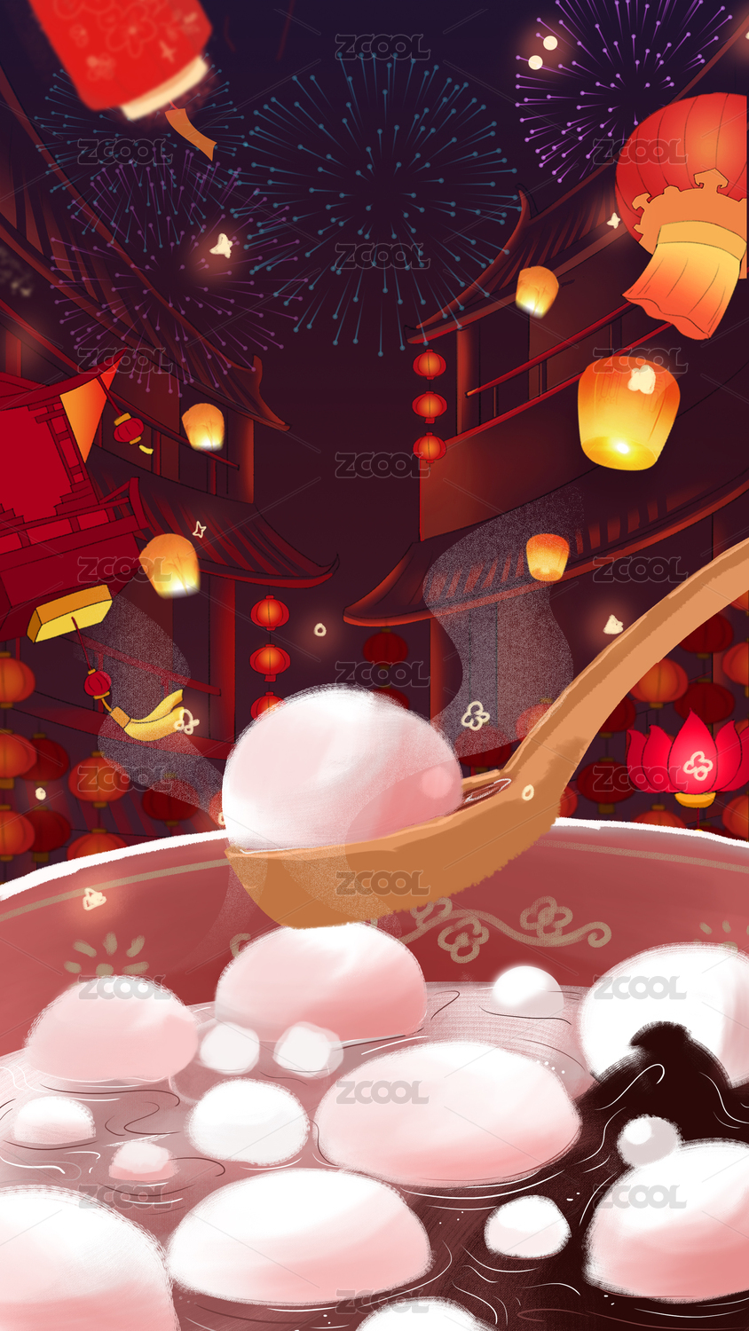 元宵節(jié)湯圓插畫