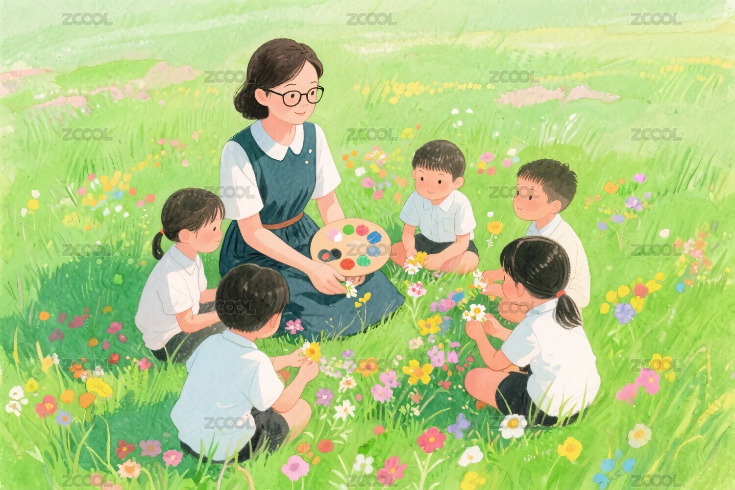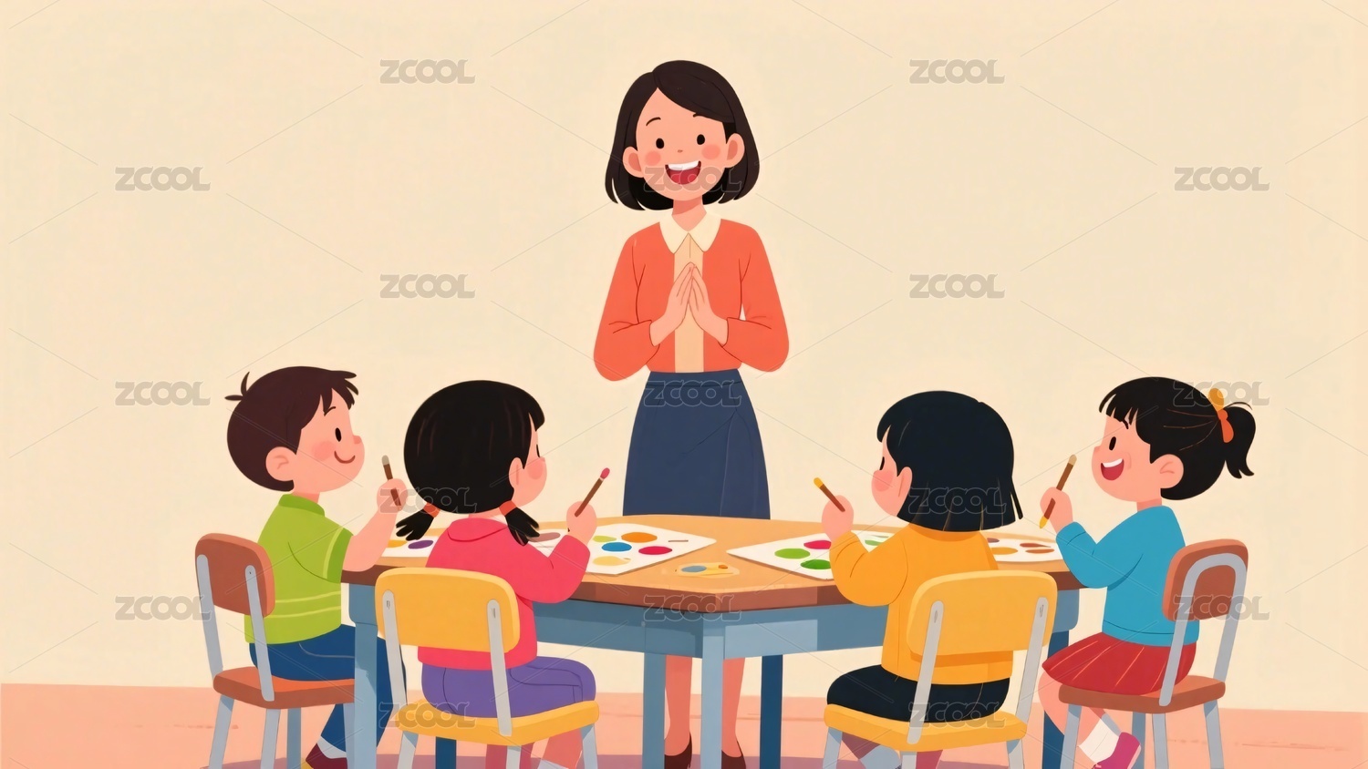 幼兒園老師在教孩子學(xué)習(xí)畫畫