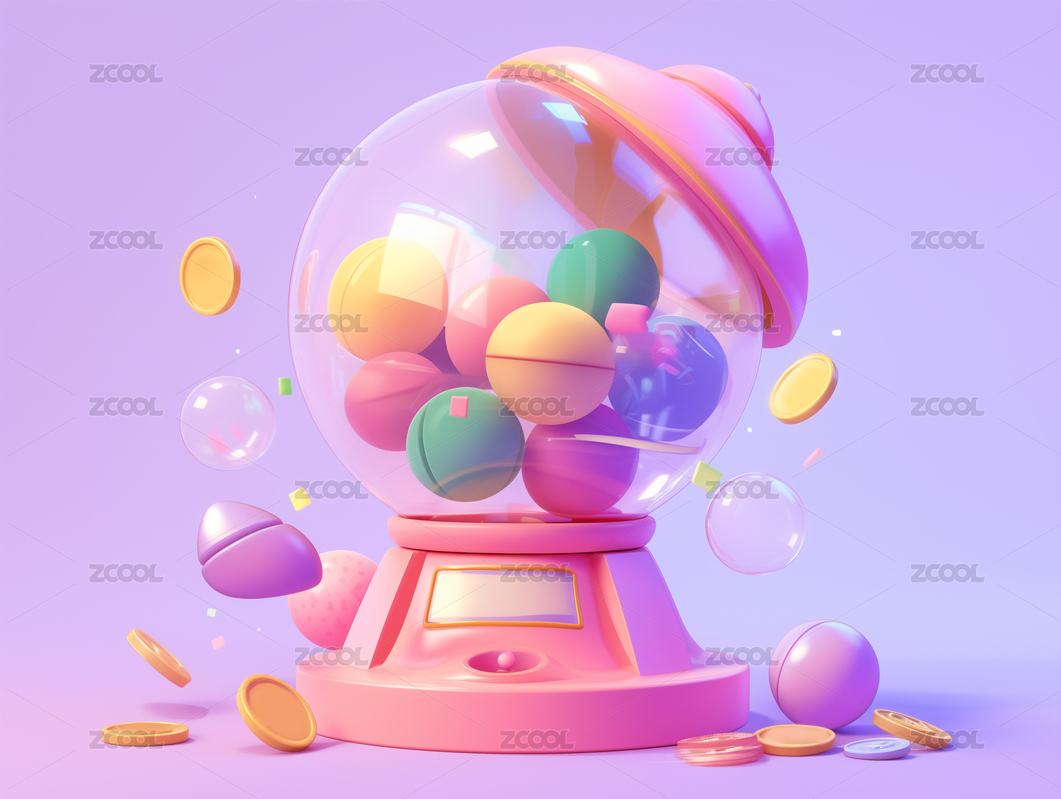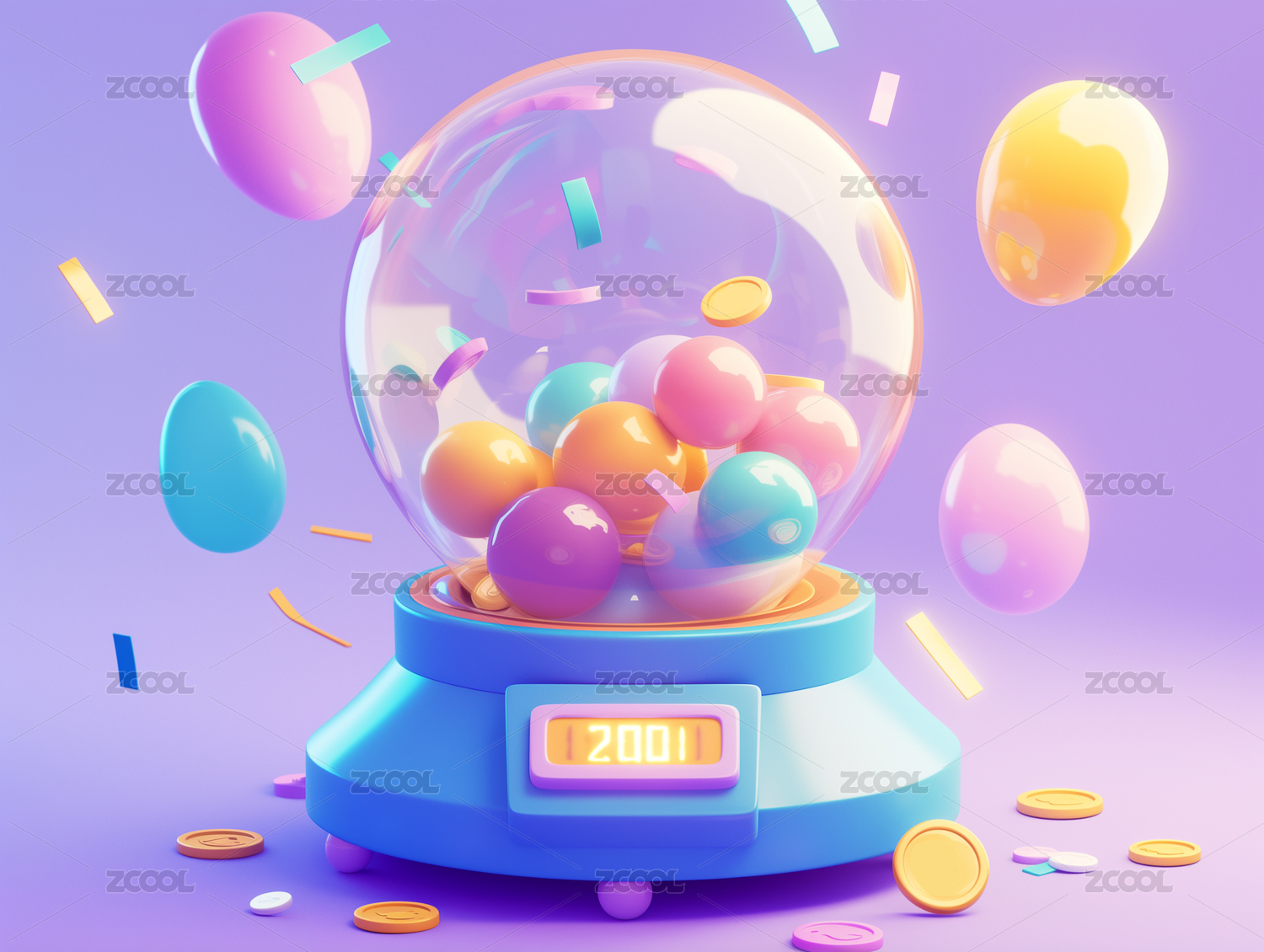 3D立體C4D風(fēng)格扭蛋機(jī)抽獎(jiǎng)活動(dòng)機(jī)器插畫