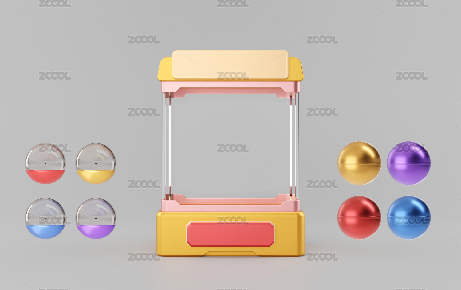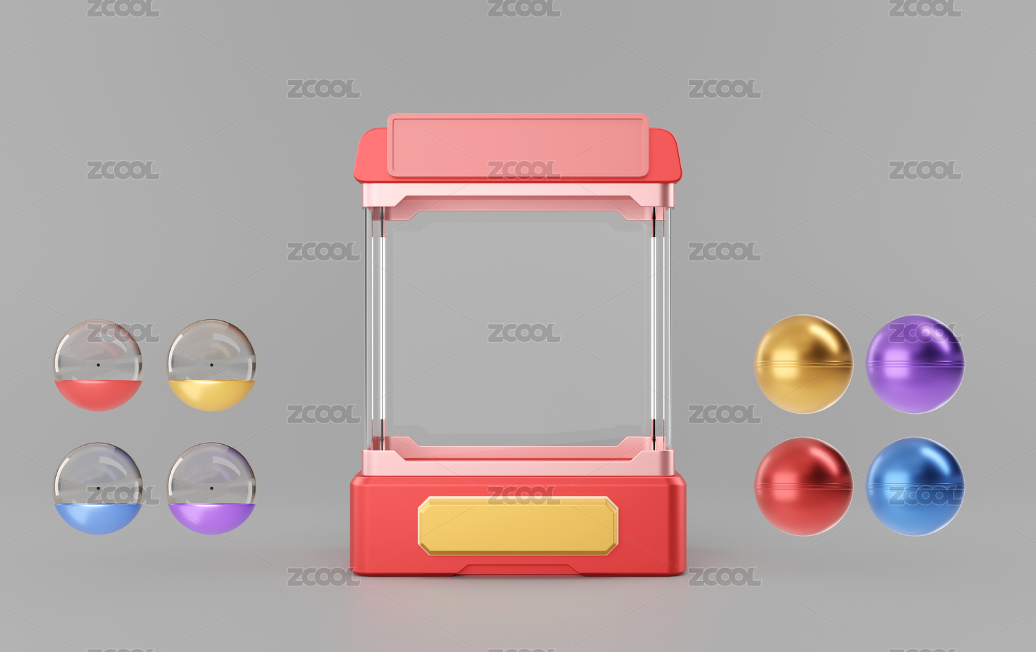 紅色背景3D立體卡通游戲抽獎(jiǎng)扭蛋機(jī)