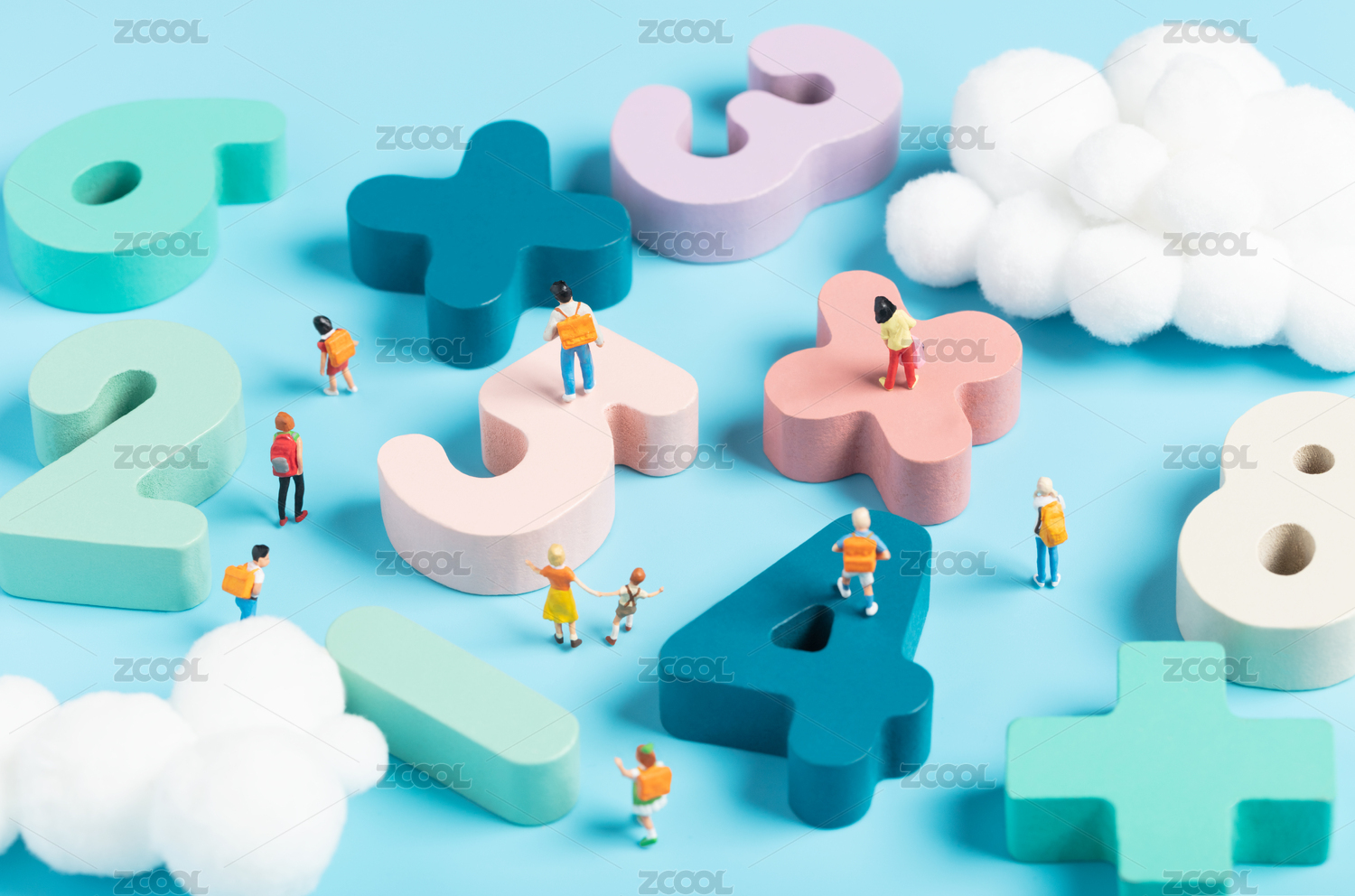 數(shù)字積木數(shù)學(xué)符號中小學(xué)生快樂的玩耍