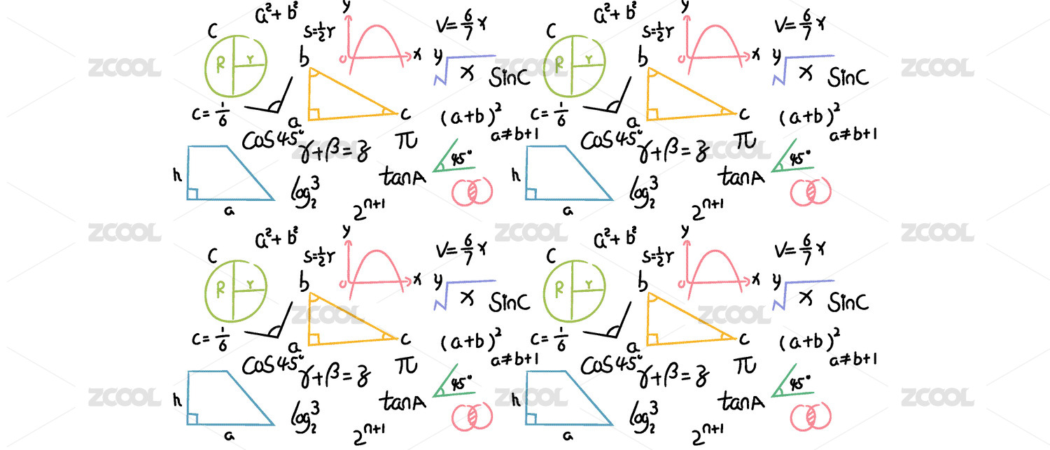 在白色背景中心位置,一些卡通幾何數(shù)學(xué)元素