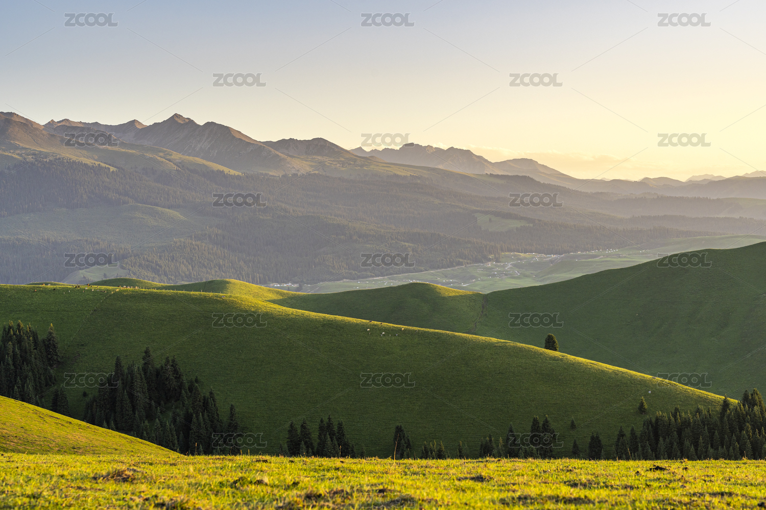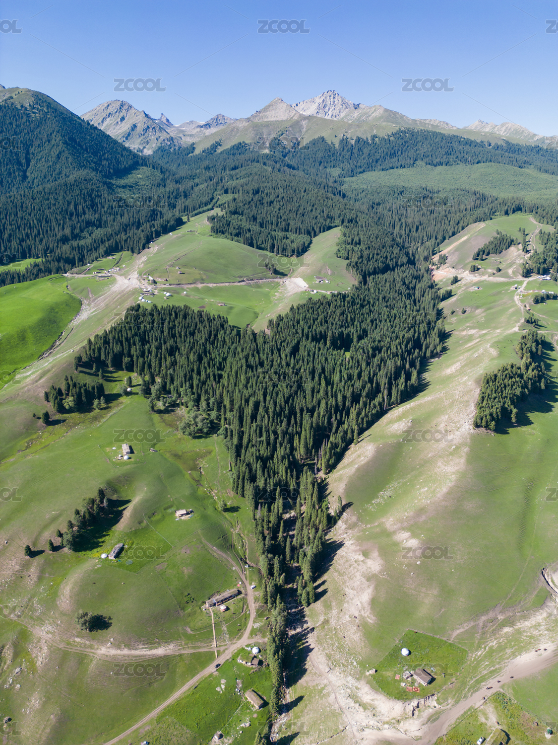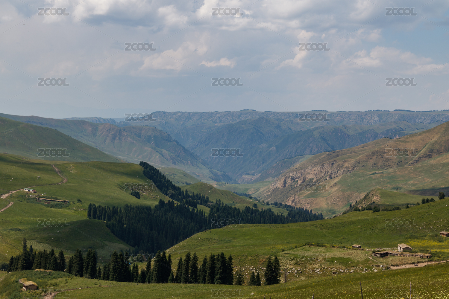 中國新疆伊犁瓊庫什臺草原森林自然風(fēng)光