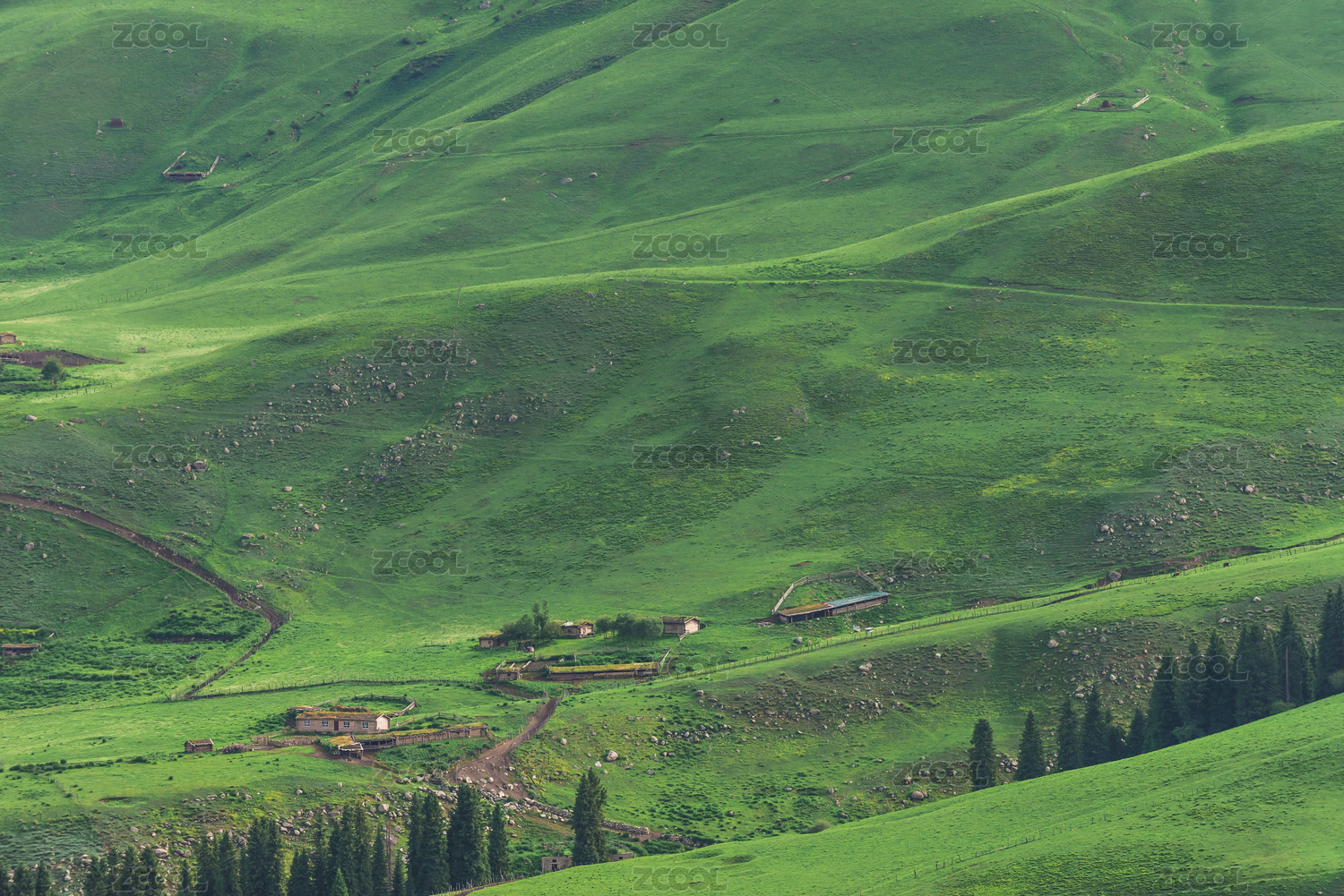 中國新疆伊犁特克斯瓊庫什臺牧場風(fēng)光
