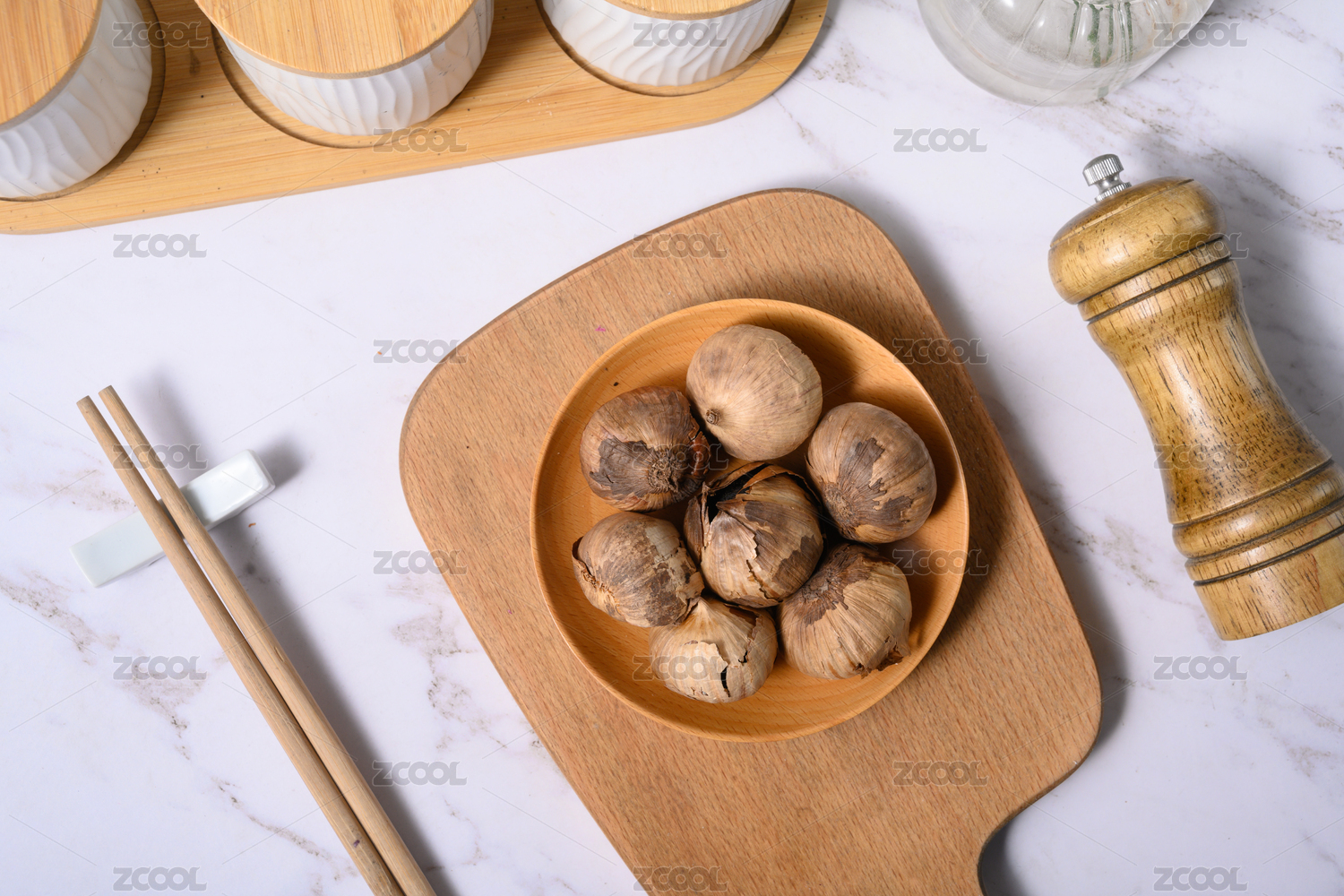 東方傳統(tǒng)中式食物黑蒜調(diào)味品即使零食