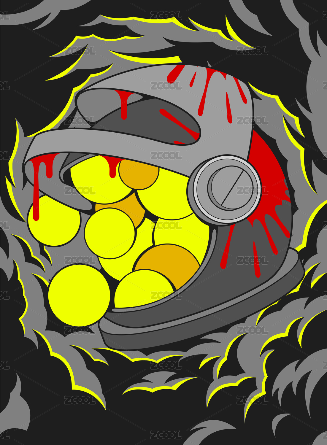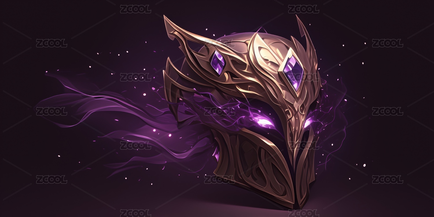 黑底游戲裝備熒光色寶石頭盔3D立體插畫
