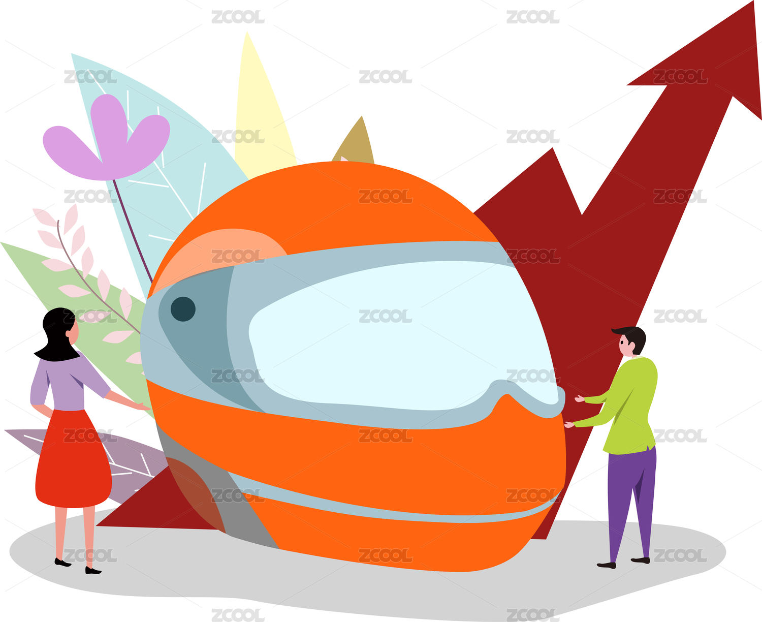 宇宙中,塞滿黃橙圓球的潮流卡通頭盔插畫