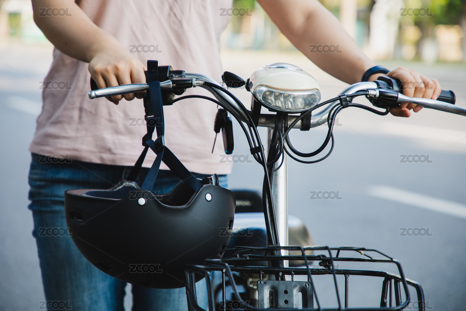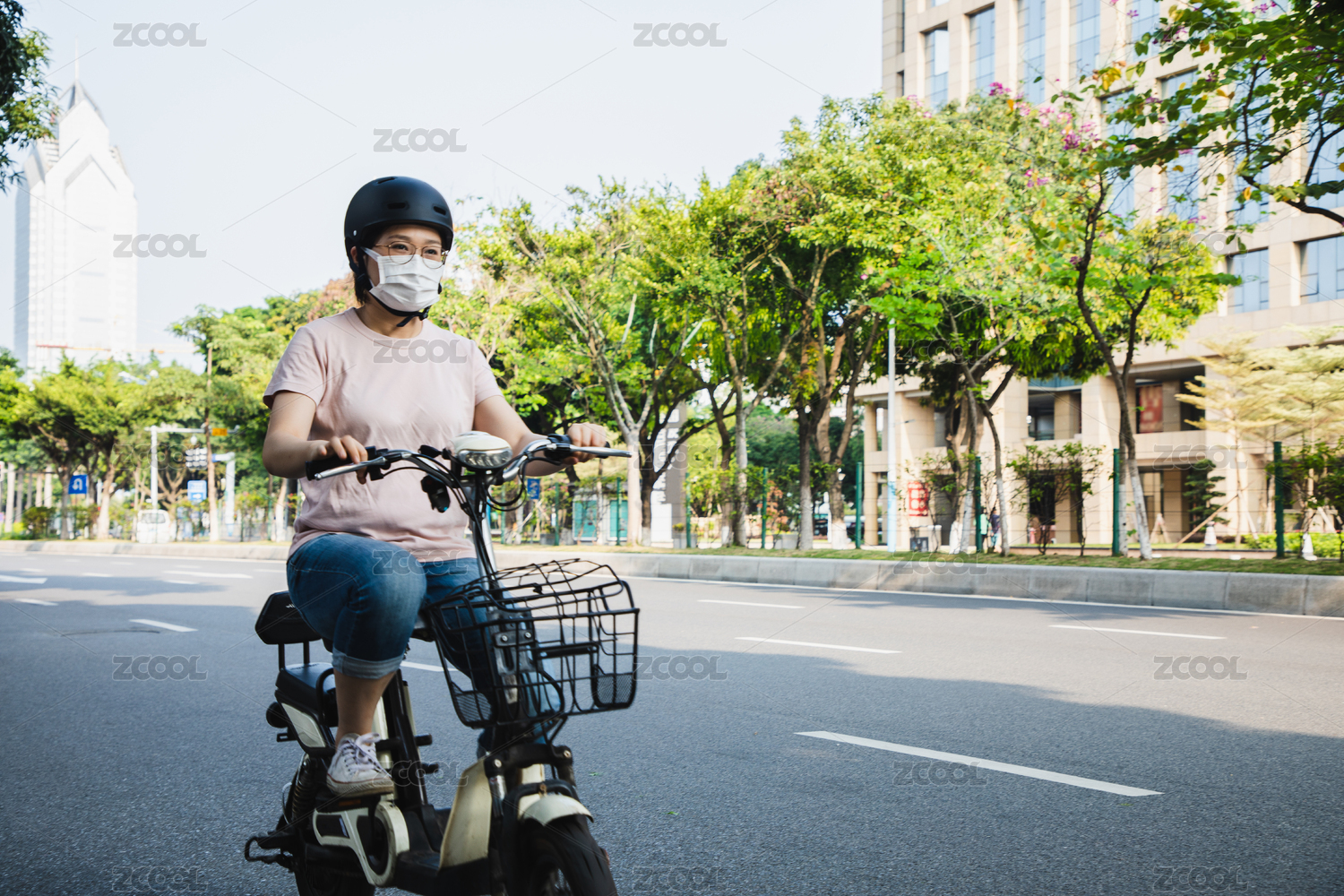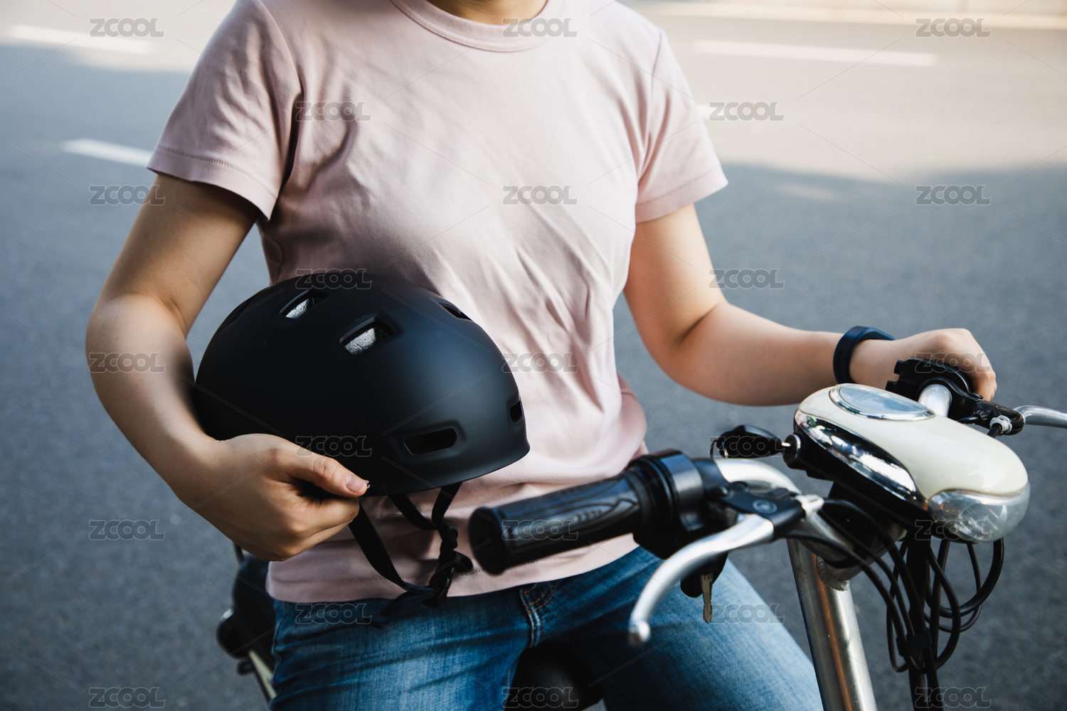 一個戴著頭盔的男生在城市背景前騎摩托車