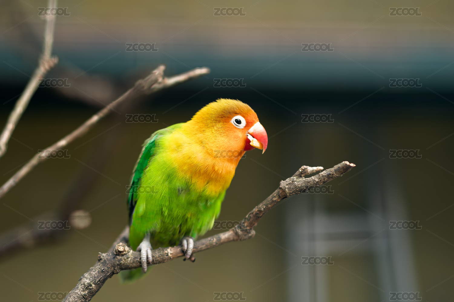 動(dòng)物園里站在樹枝上吃東西的鸚鵡