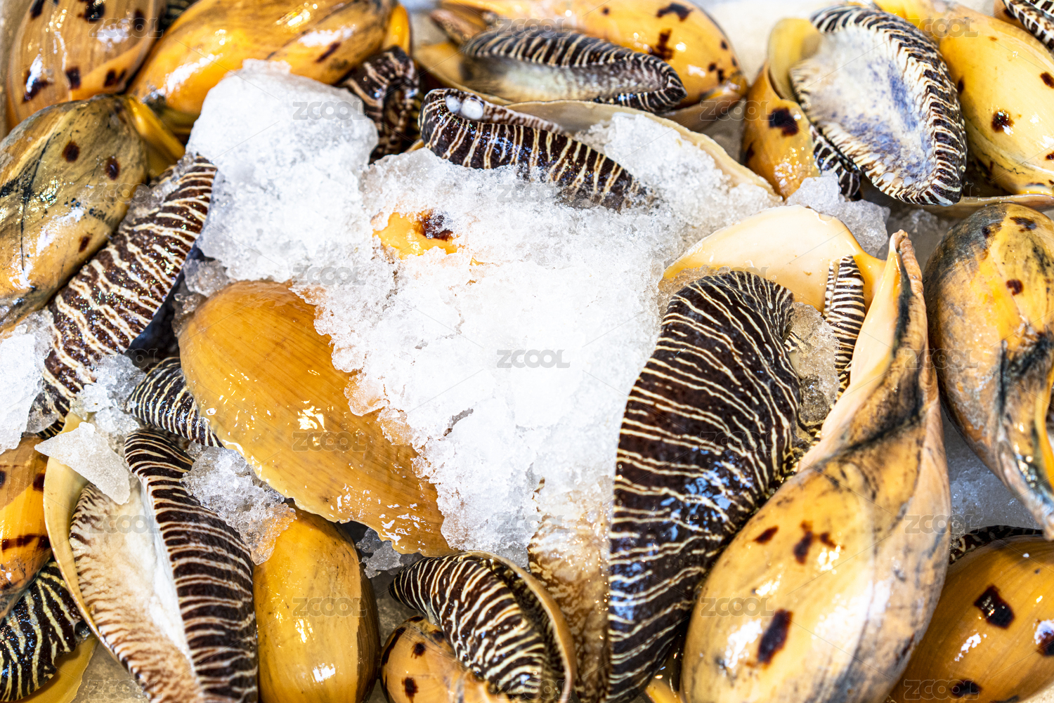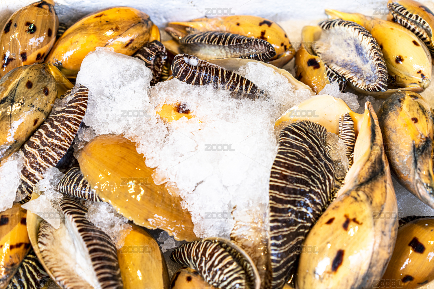 用冰塊冷凍著的海產(chǎn)品鸚鵡螺