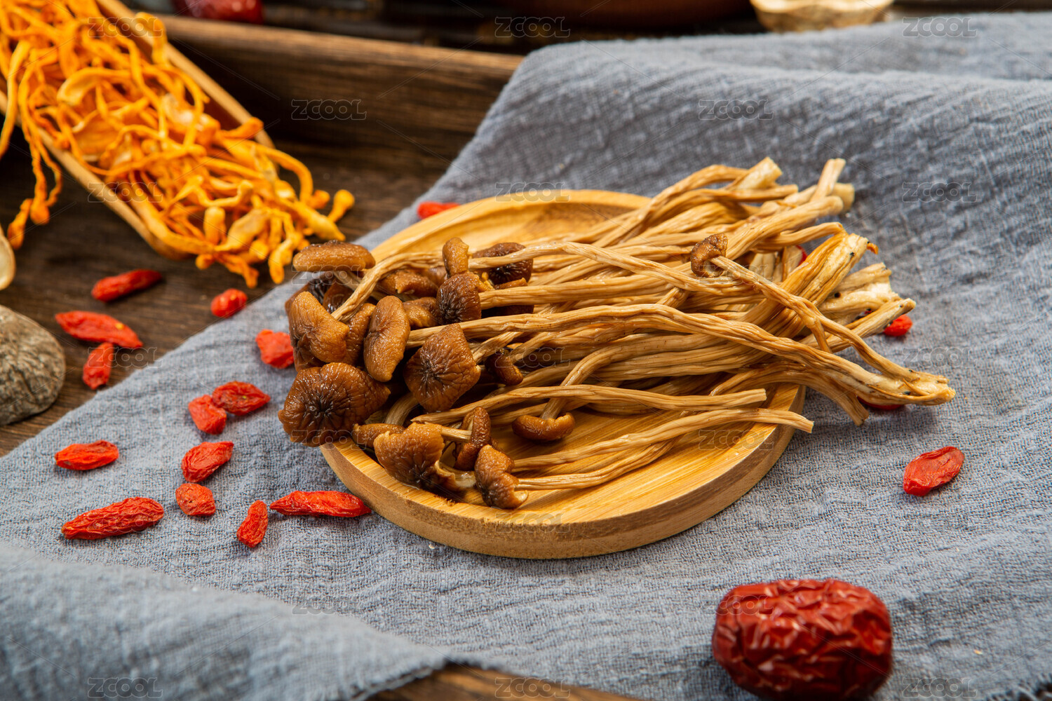 茶樹菇干、泡發(fā)茶樹菇多角度帶場(chǎng)景圖