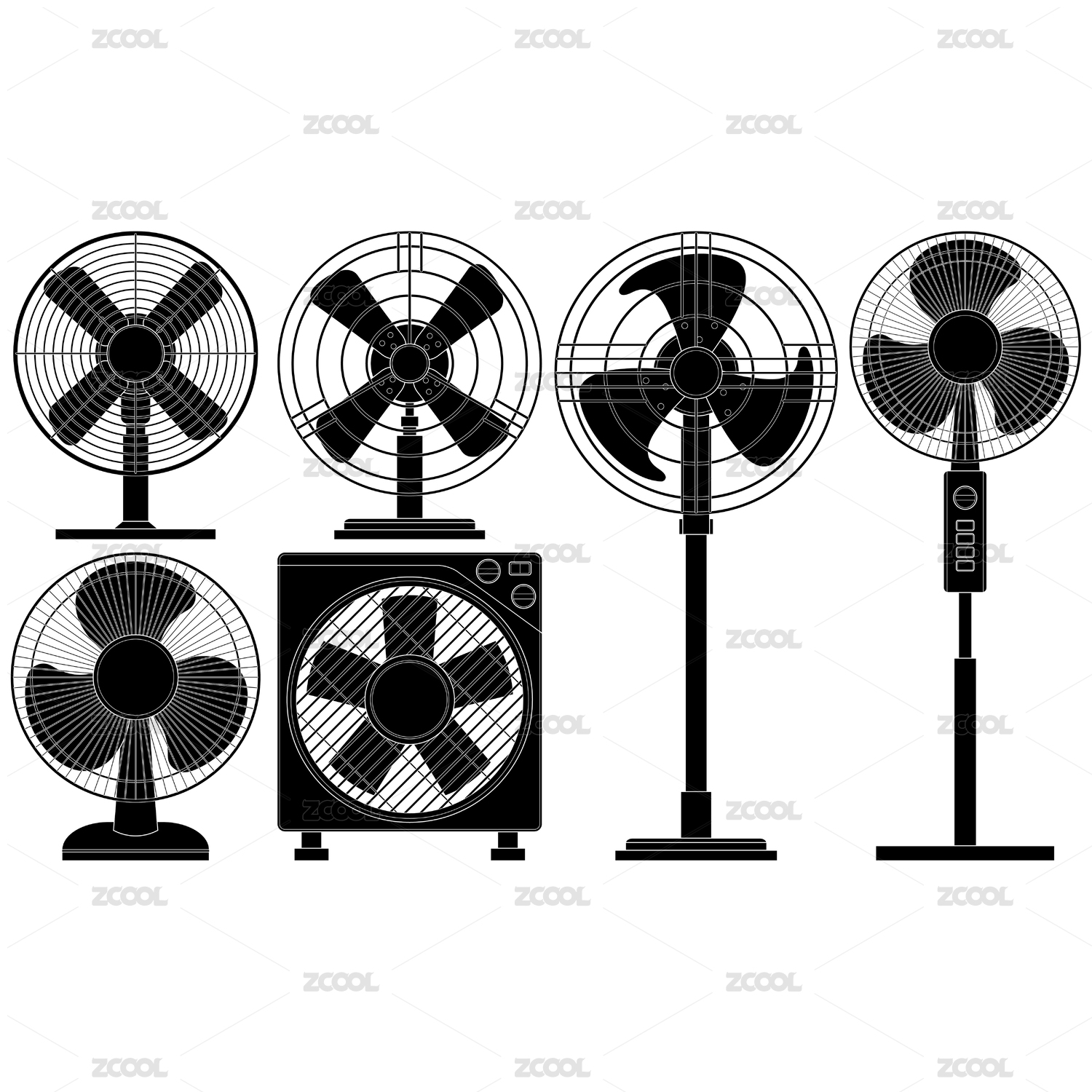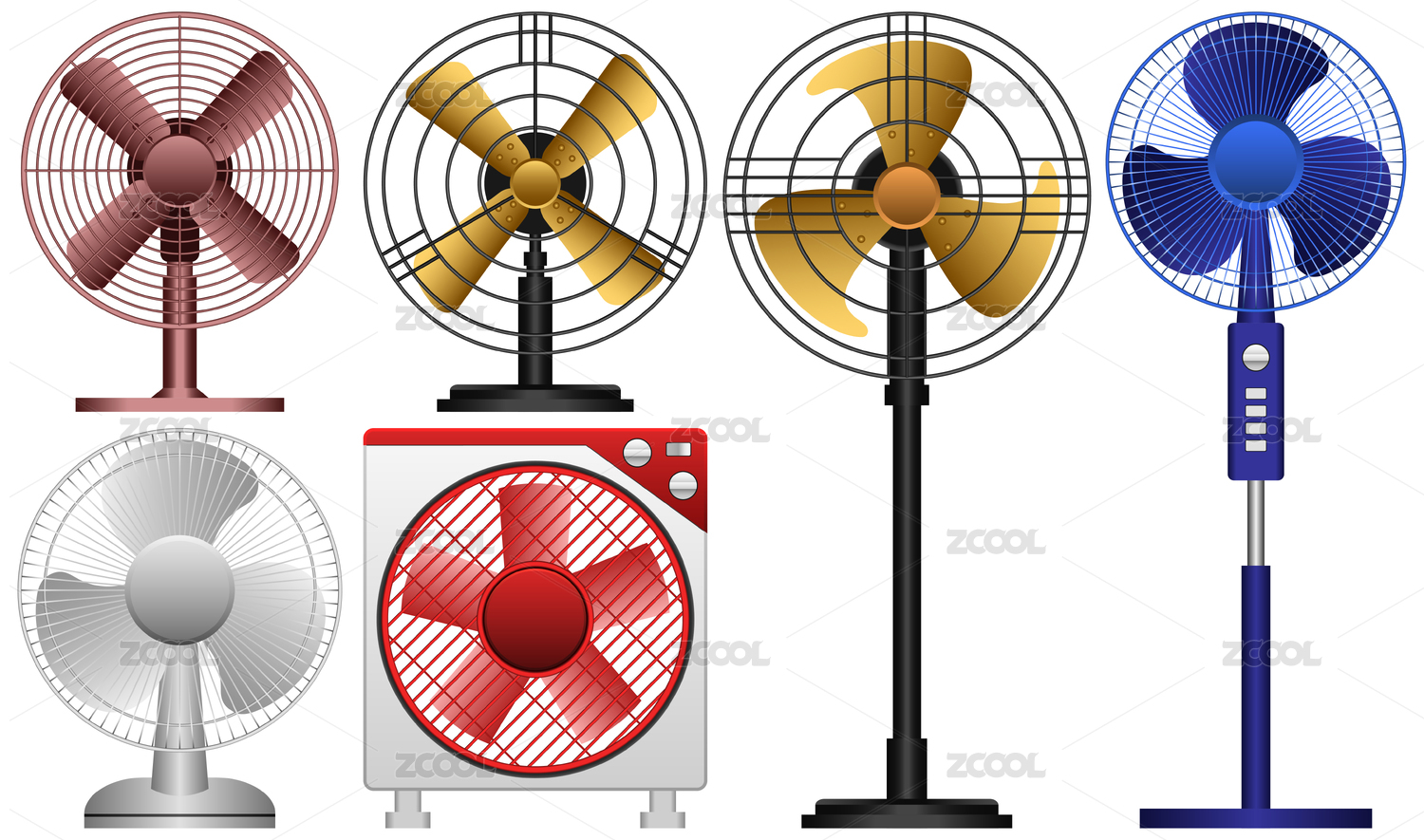 多種家用電扇插圖素材矢量圖