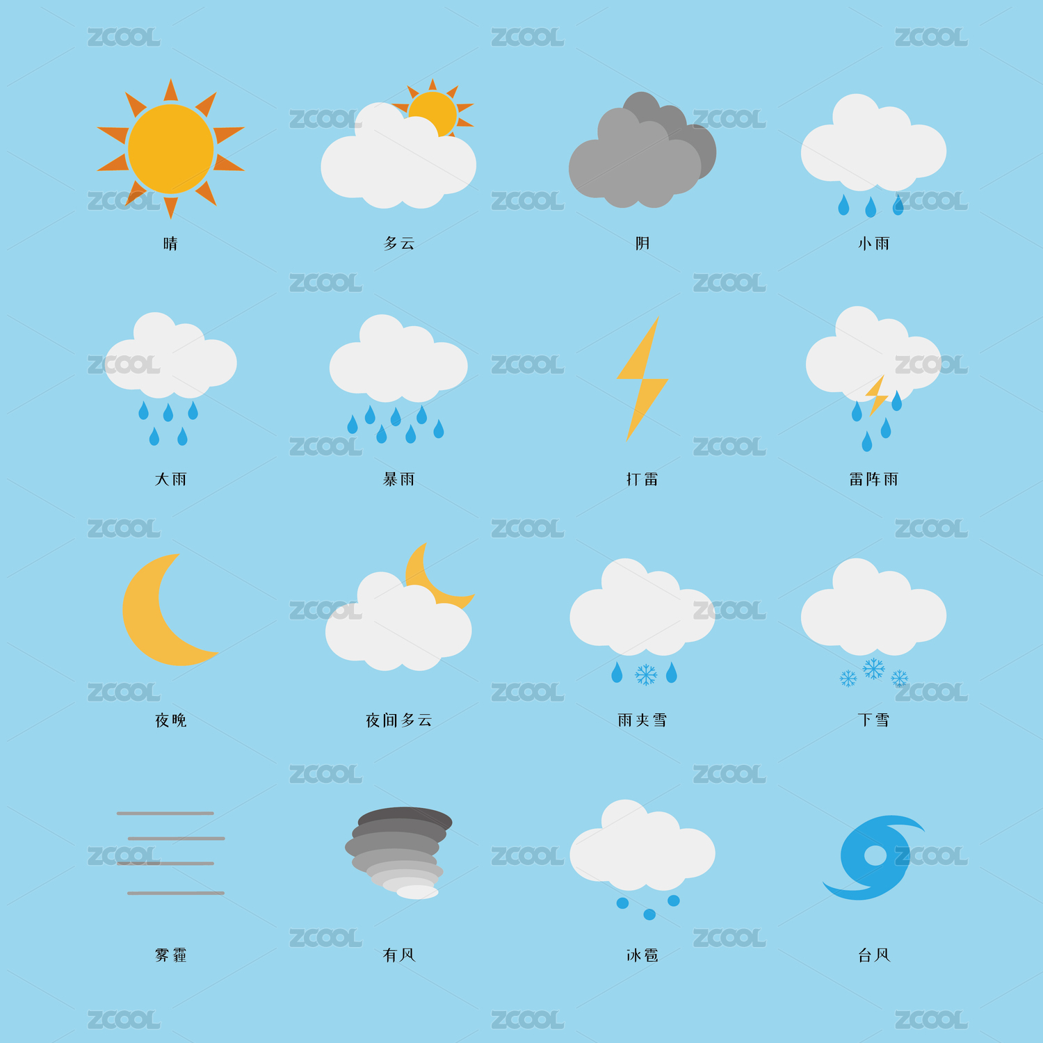 卡通簡約天氣圖標