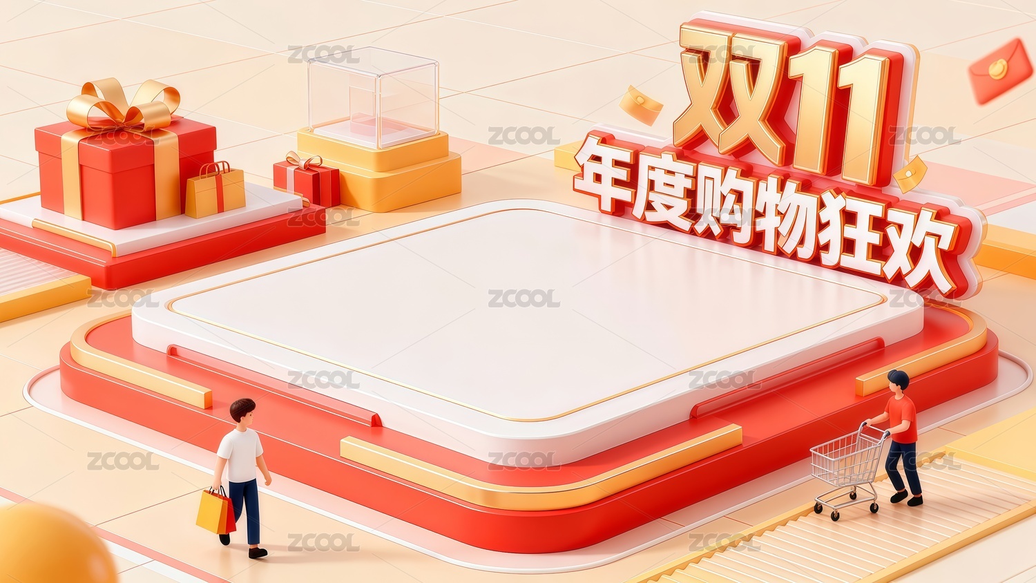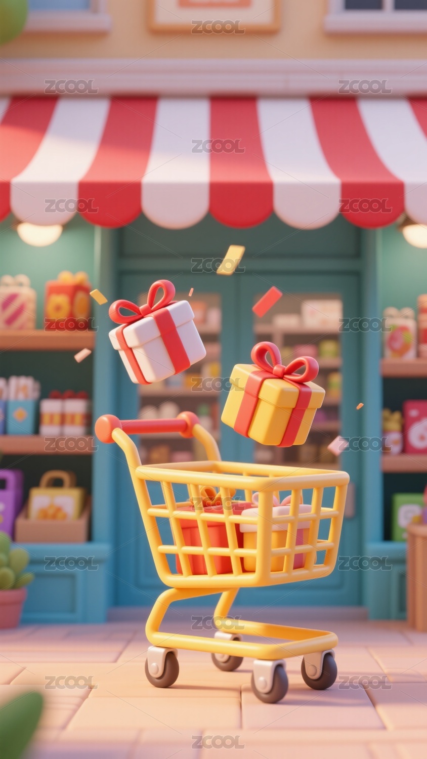 3D卡通購物車場景插畫