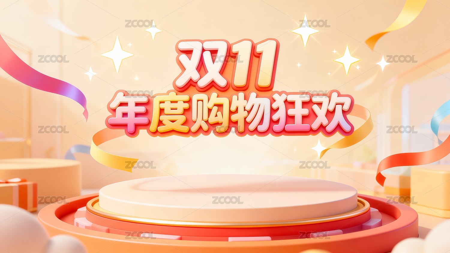 卡通風(fēng)格雙十一電商展臺插畫