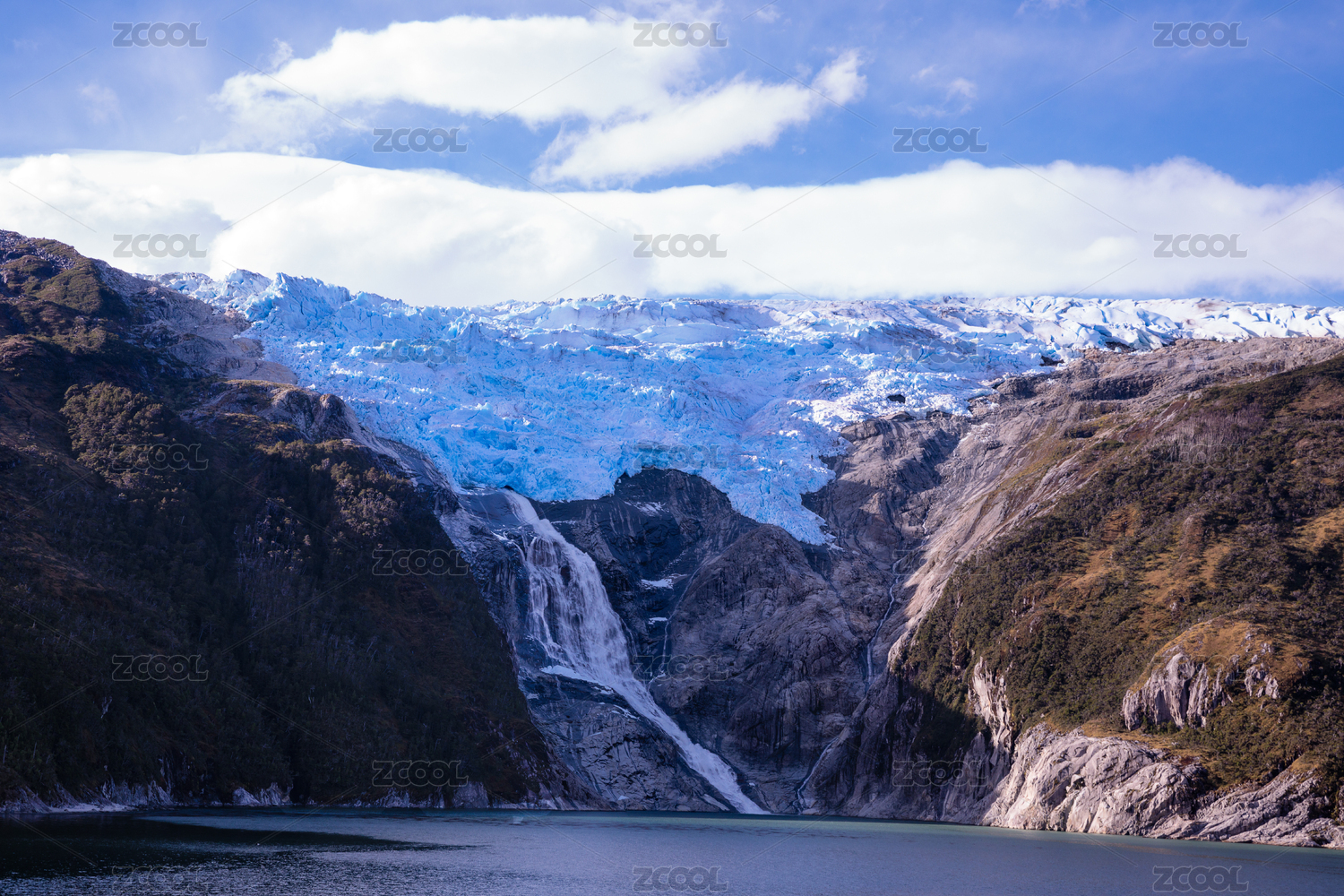 南美智利和阿根廷邊境的冰川灣兩岸雪山聳立