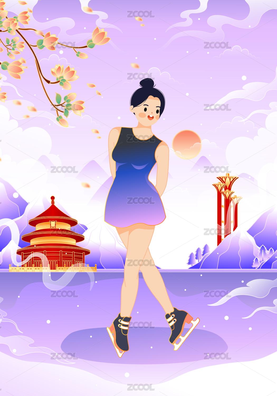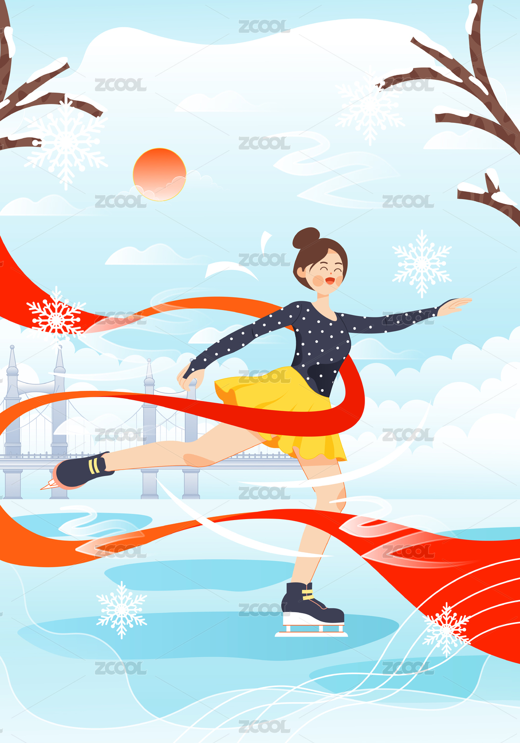 冬奧會(huì)運(yùn)動(dòng)項(xiàng)目花樣滑冰插畫(huà)