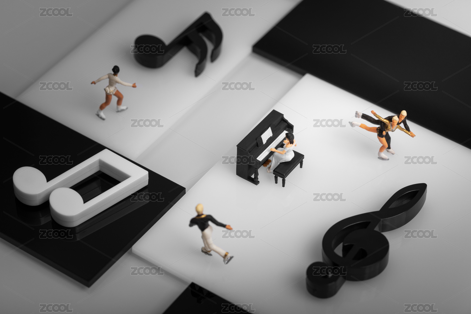微縮創(chuàng)意彈奏鋼琴曲與花樣滑冰