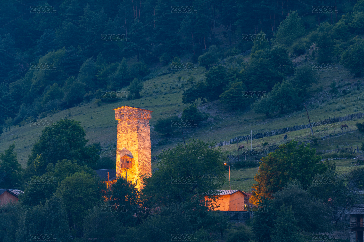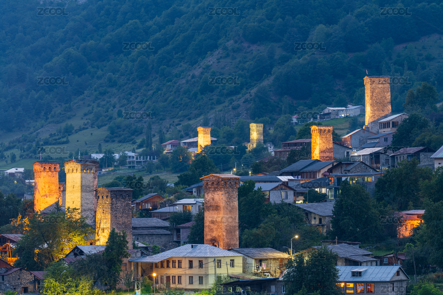 格魯吉亞梅斯蒂亞高加索風(fēng)景碉樓夜景