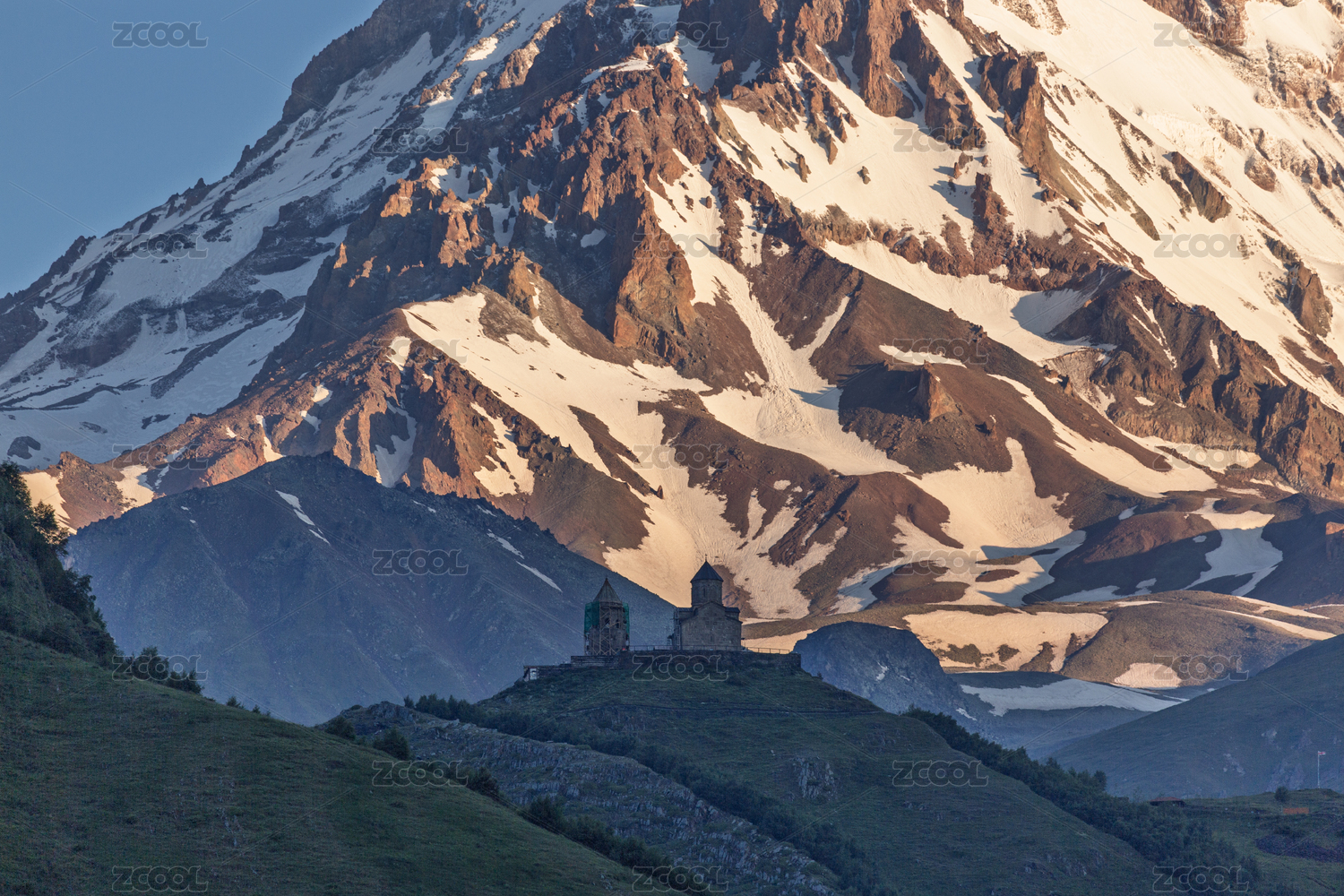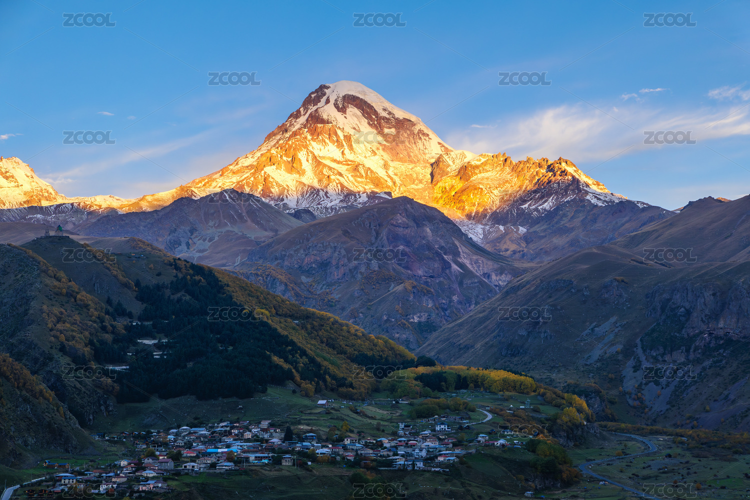 高加索格魯吉亞卡茲別克的日照金山自然風(fēng)光