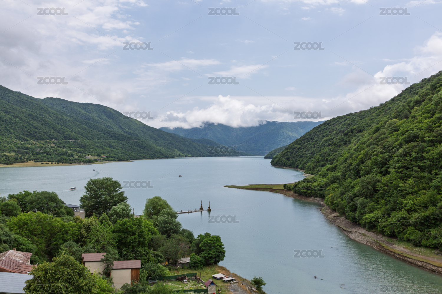 藍(lán)天白云下格魯吉亞金瓦利水庫湖光山色